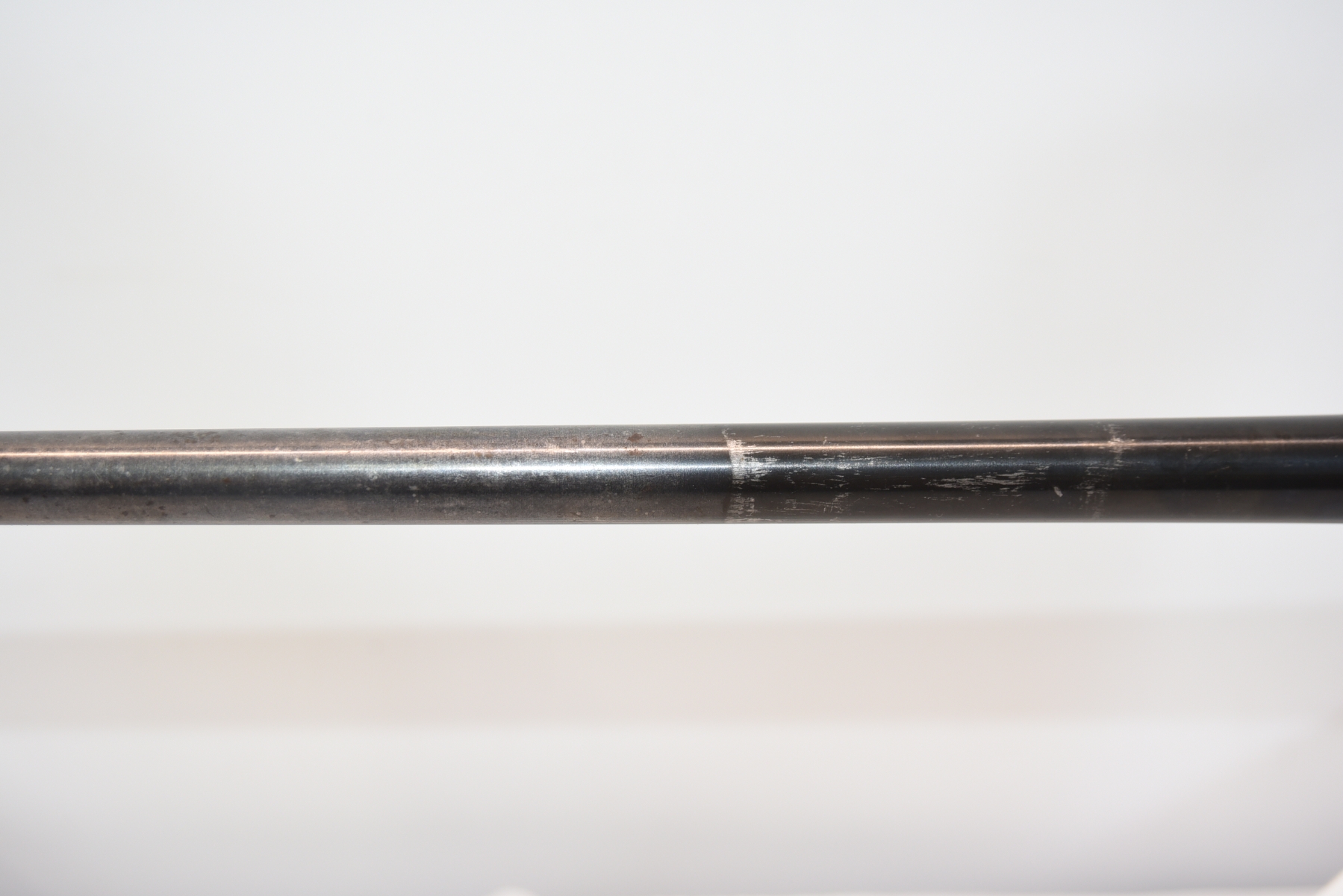 Unknown Make Swedish Mauser M96 6.5x63 Caliber Barrel. NOTE: a light bulge can be felt about 6" from the muzzle. Barrel Length: 27.5". Bore Condition: shiny, smooth with good rifling. Metal finish shows tool mark dents and grinding marks, there are also scratches, scuffs; condition is fair.