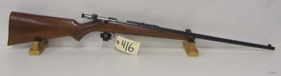 NON-RESTRICTED, 22LR, 22" BARREL, S/N 52928, WOOD IN GOOD CONDITION WITH TYPICAL AGE MARKS AND 2 CRACKS NEAR BUTT OF STOCK, BLUEING FAIR WITH SMALL SURFACE RUST, BORE IN GOOD CONDITION.