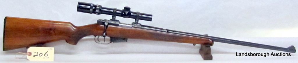 NON-RESTRICTED, BOLT ACTION, 22 HORNET, 23" BARREL, SN 36296. WOOD HAS A FEW SCRATCHES, BLUING GOOD, BORE EXCELLENT. SET TRIGGERS.