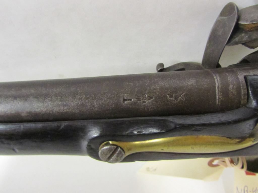 NON-RESTRICTED, 75CAL FLINTLOCK MUZZLELOADER, 38" BARREL, WOOD IN GOD CONDITION WITH TYPICAL AGE MARKS, BLUEING AQUIRED PATINA AND PITTING, BORE FAIR WITH PITTING CONSISTENT WITH AGE.