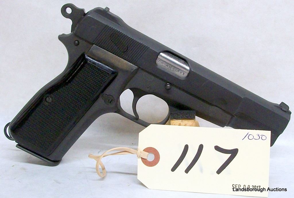 RESTRICTED, SEMI AUTO, 9MM LUGER, 120MM BARREL, SN 245NW54033. GRIPS GOOD, GREY MATTE FINISH HAS SOME SCRATCHES, BORE HAS SOME MARKS.