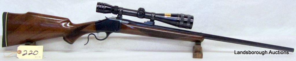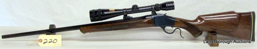 NON-RESTRICTED, SINGLE SHOT, 22-250 REM, 26" BARREL, SN 05044RT147. WOOD BUTT STOCK CRACKED BEHIND LOWER TANG, BLUING VERY GOOD, BORE VERY GOOD. COMES WITH REDFIELD 4-12 X 40 SCOPE. ORIGINAL SWIVELS MISSING.