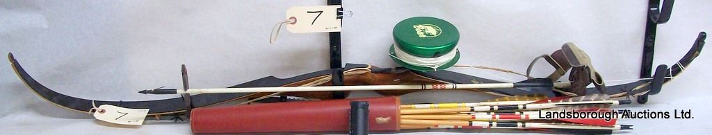 RIGHT HANDED, SET UP FOR FISHING, COMES WITH 14 WOODEN ARROWS, QUIVER, FINGER GUARD AND STABILIZER. 48 LBS.