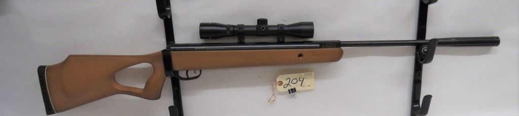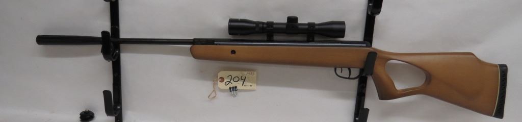 Non-restricted, single shot, .22 cal., 19" barrel, SN 815X13204, wood is excellent, bluing is very good with two small spots of surface rust, bore is excellent, comes with a center point, 4 x 32 scope not on gun, comes in original box, gun is as new, PAL required shots at up to 950 fps