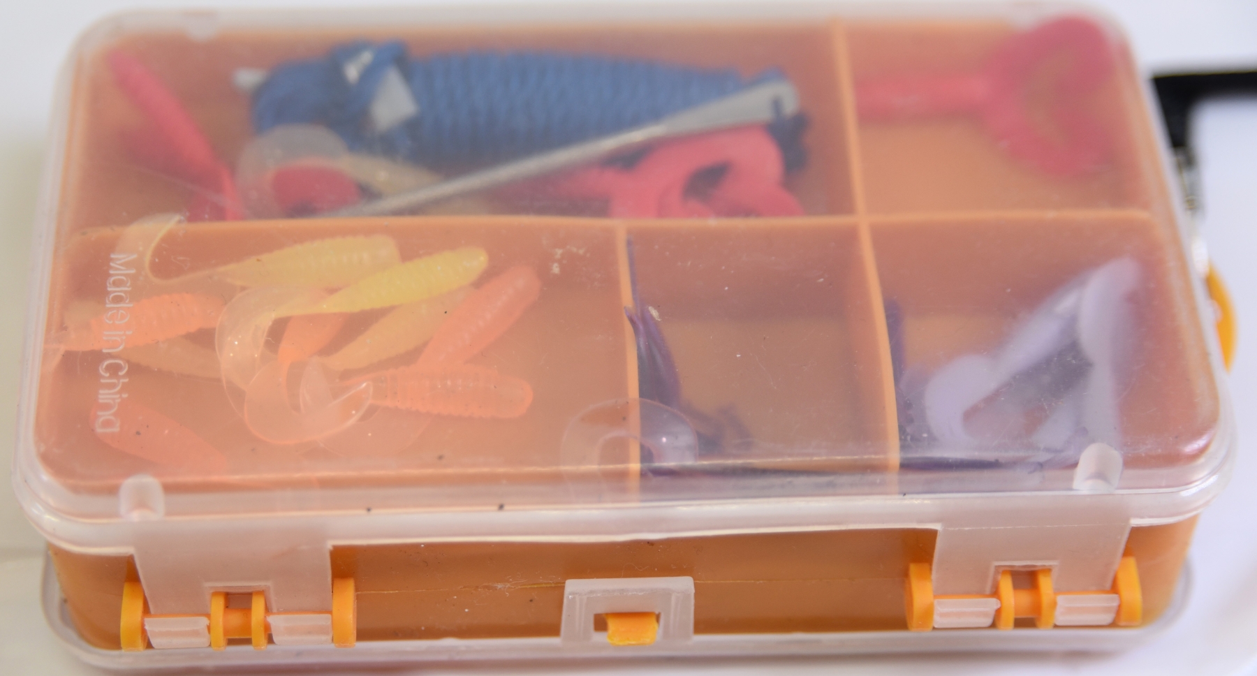2 double sided 5 1/2" x 3" tackle boxes w/ tackle