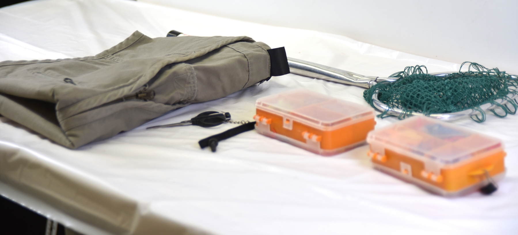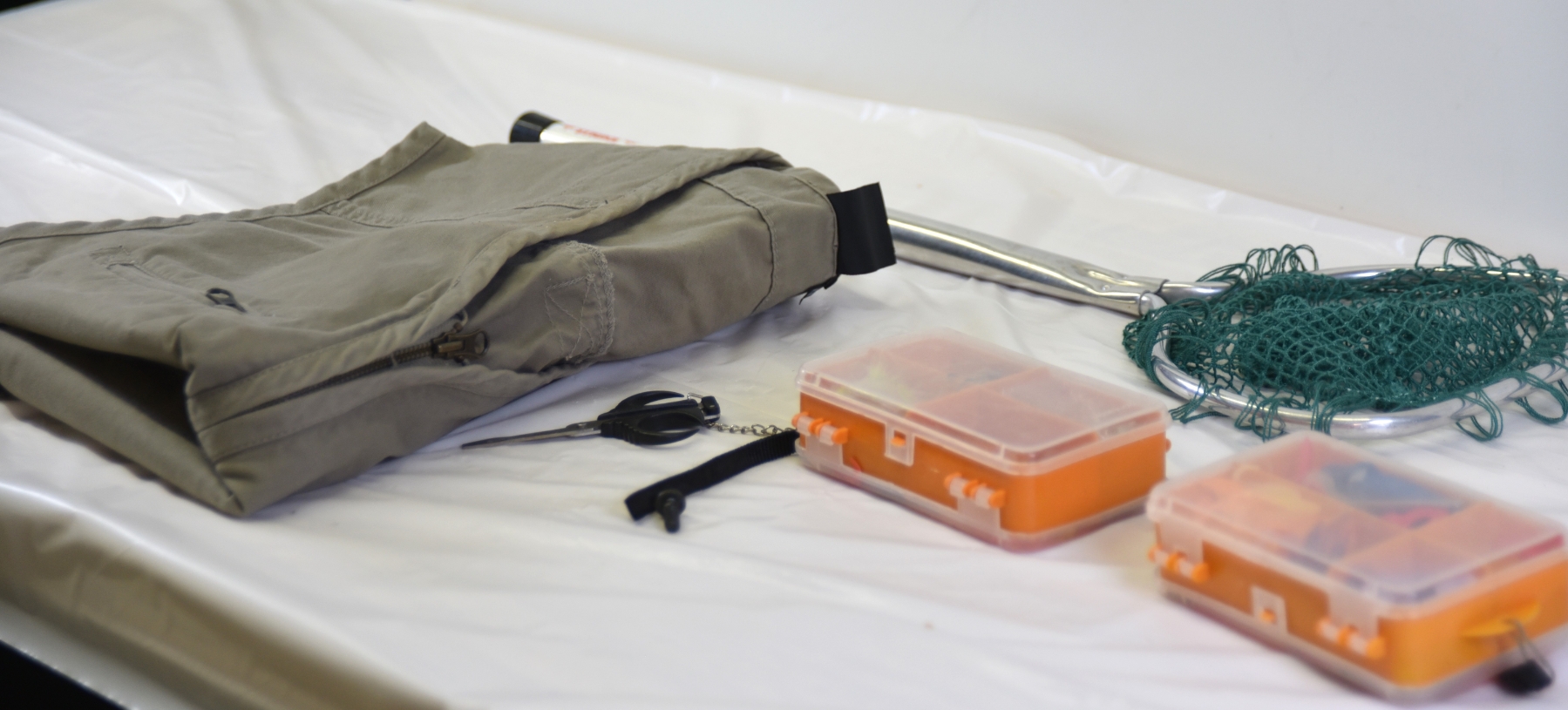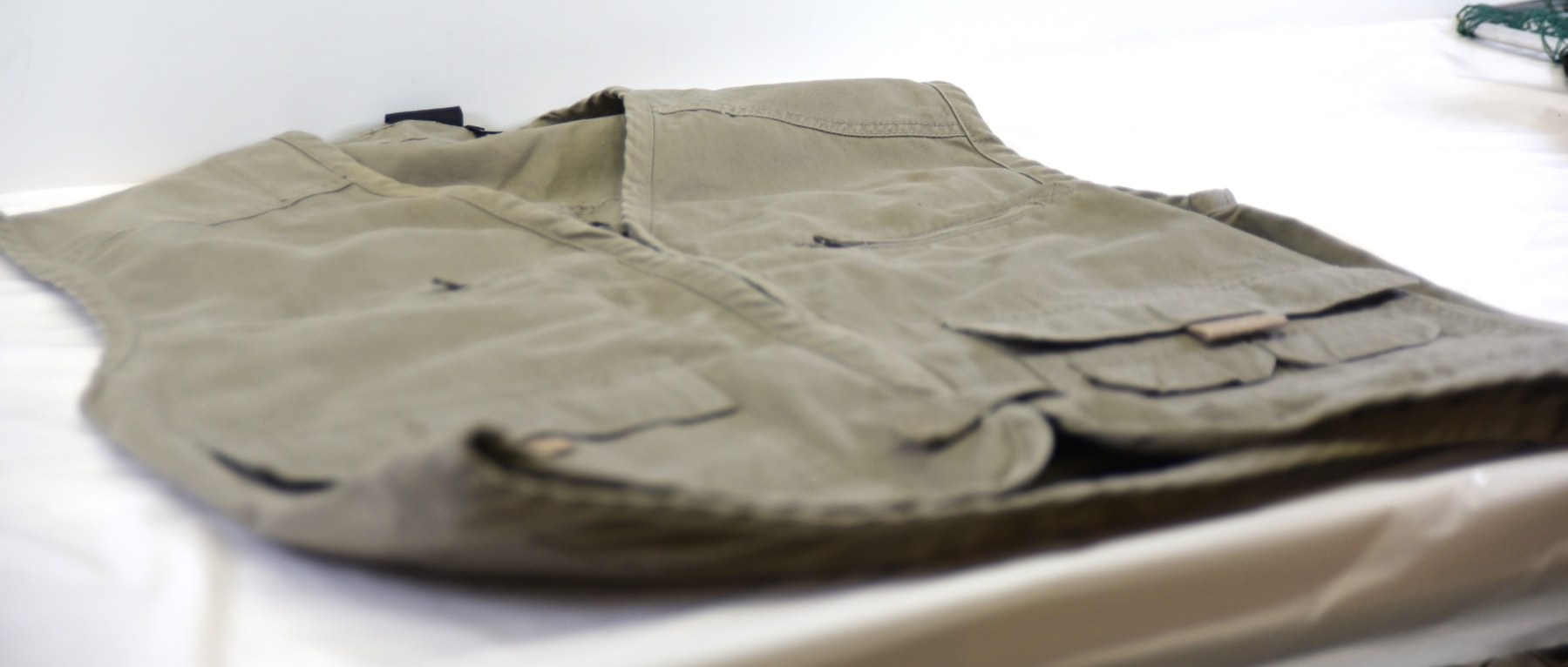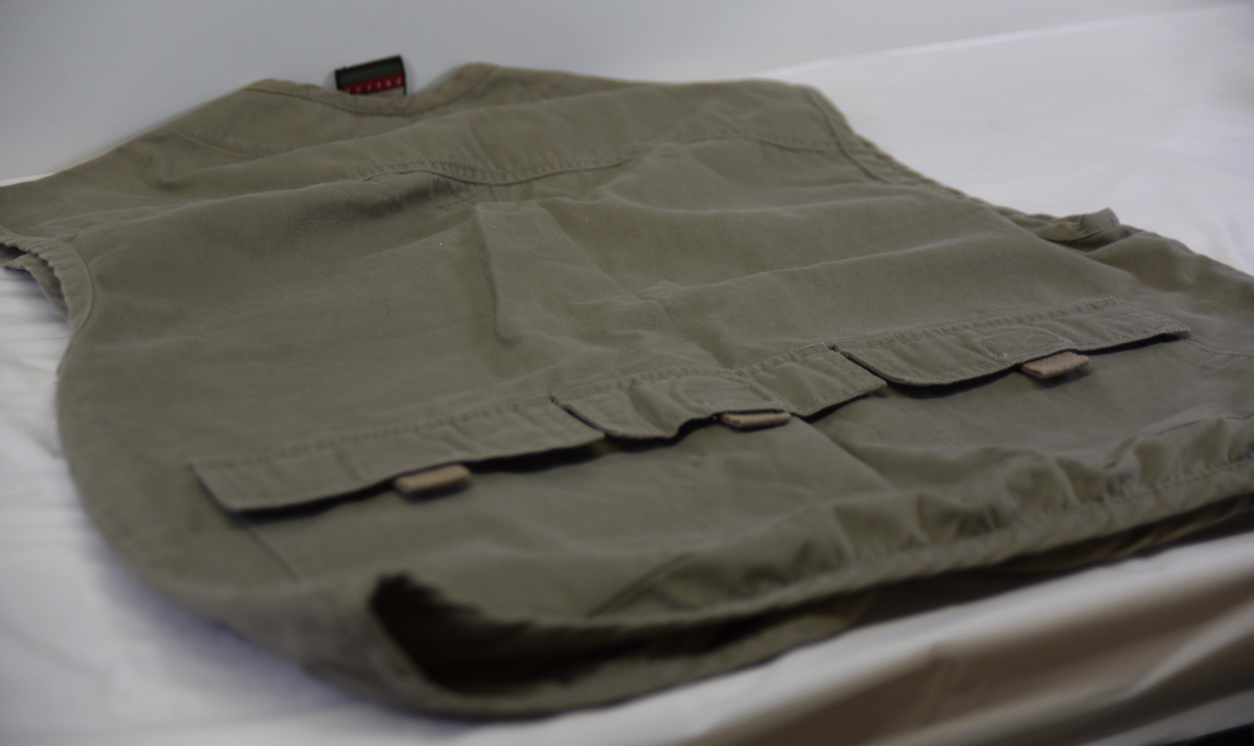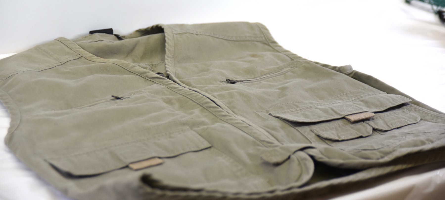 Khaki prefab fishing vest- size med.