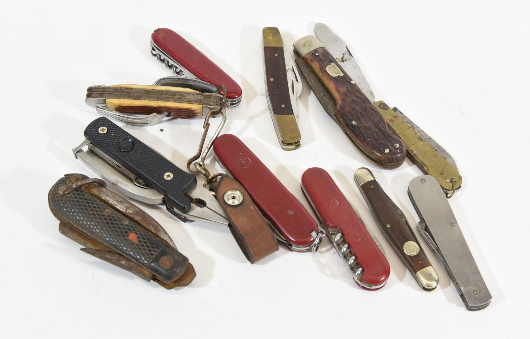 12 various style pocket knives including a vintage Premiere Lifetime in fair condition and a Halifax fisherman's knife.