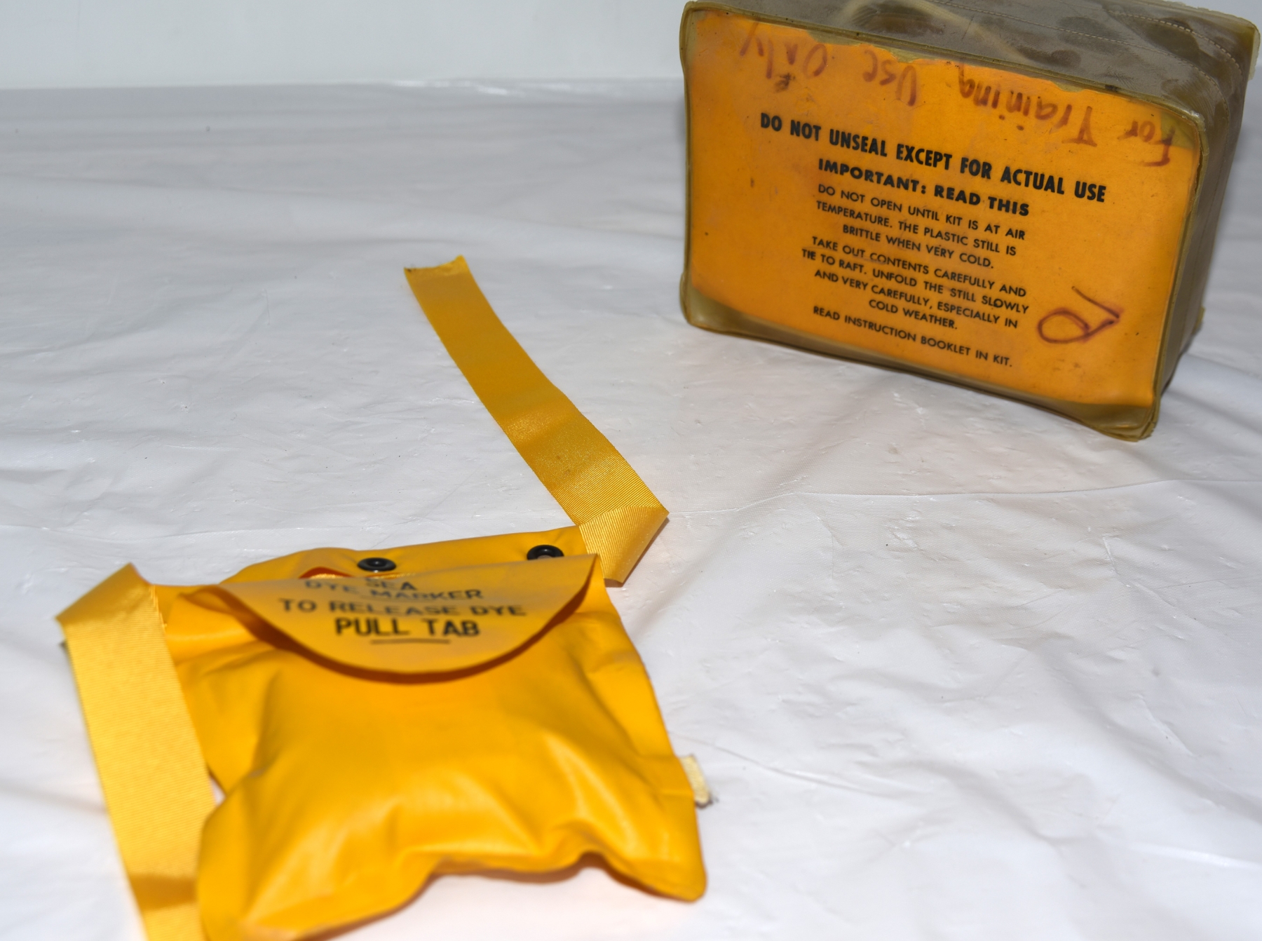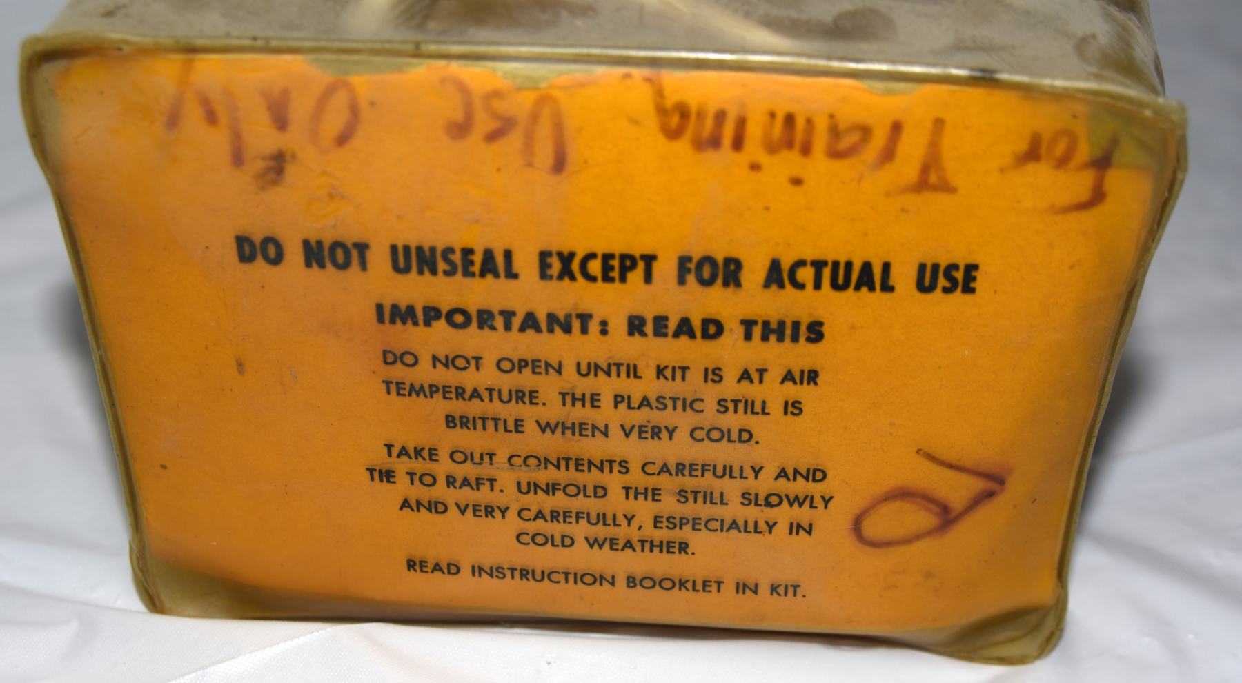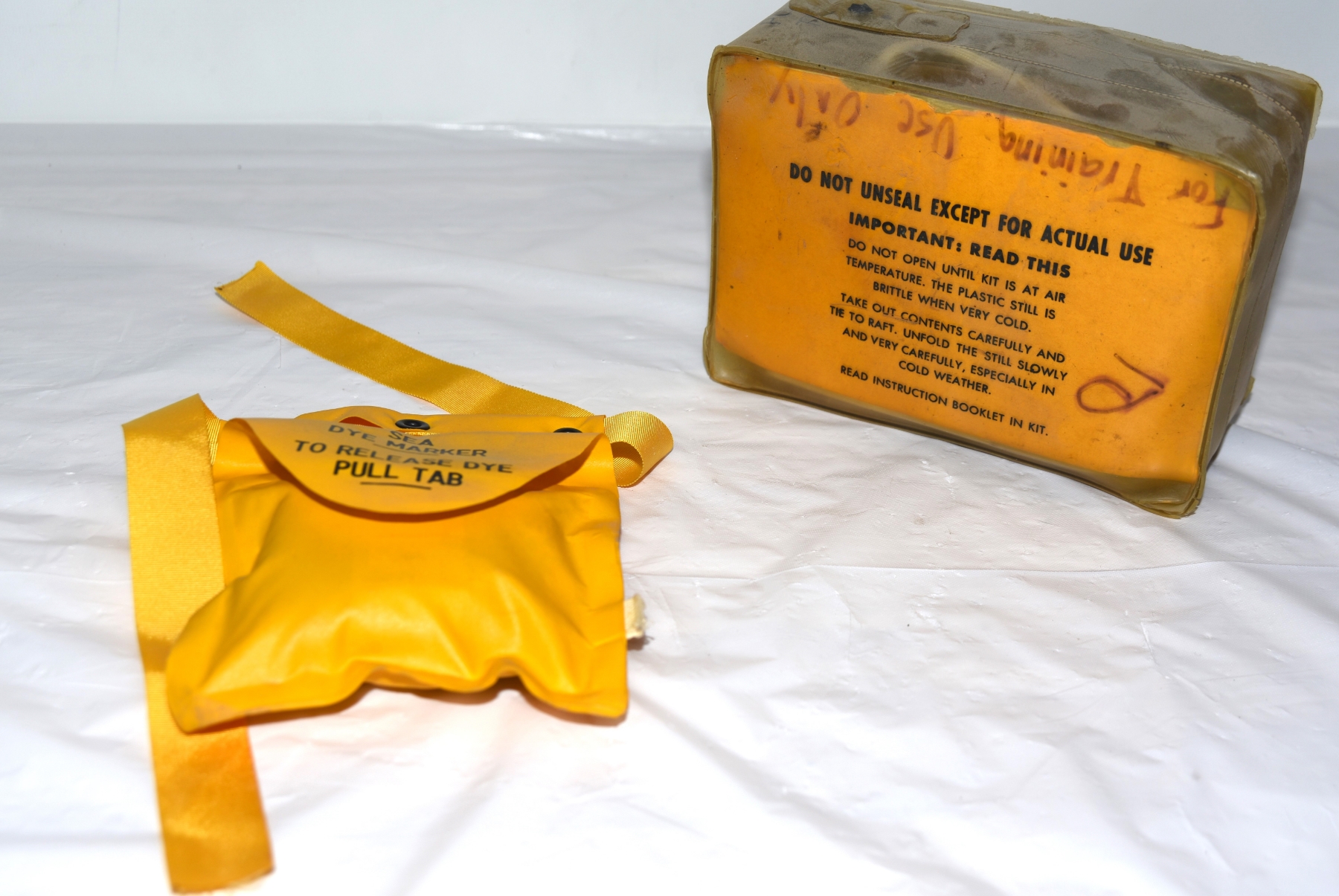 Yellow sealed Survival distillation kit -likely a vintage solar still used in military aircraft survival kits