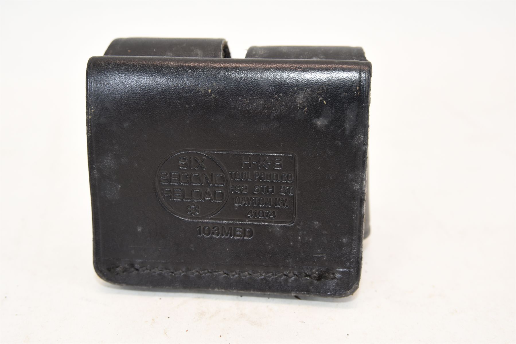 Black leather belt cylinder holster for 2 cylinders. HKS 103 Medium. Good used condition.