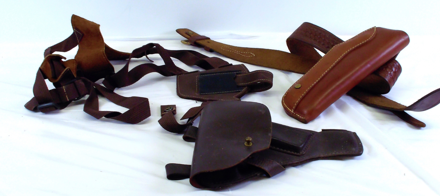 Box Lot - Shoulder Holster Rig & Molded Holster Leather & Vintage Leather Handgun Holster