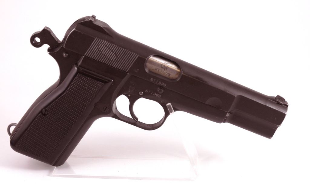 Restricted, semi auto, 9mm Luger, 118mm barrel, SN 6T1999. Plastic grips have some marks, flat metal finish has some marks, bore very good. No Mag.