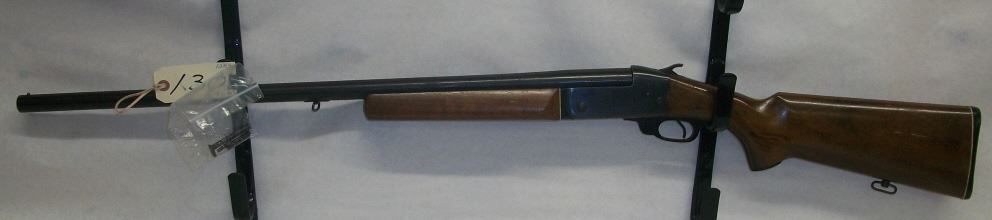 NON-RESTRICTED, SINGLE SHOT, 12GA X 2 3/4", 30" BARREL WITH FIXED FULL CHOKE, SN 639018. WOOD HAS SCRATCHES AND MARKS, BLUING HAS LIGHT PITTING ALL OVER, BORE VERY GOOD. EJECTOR MECHANSIM HAS BEEN DISASSEMBLED,