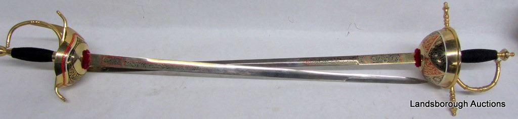 WOOD CAVERED TOLEDO CREST, 2 SPANISH RAPIER SWORDS 30 3/4 IN LEIGHT