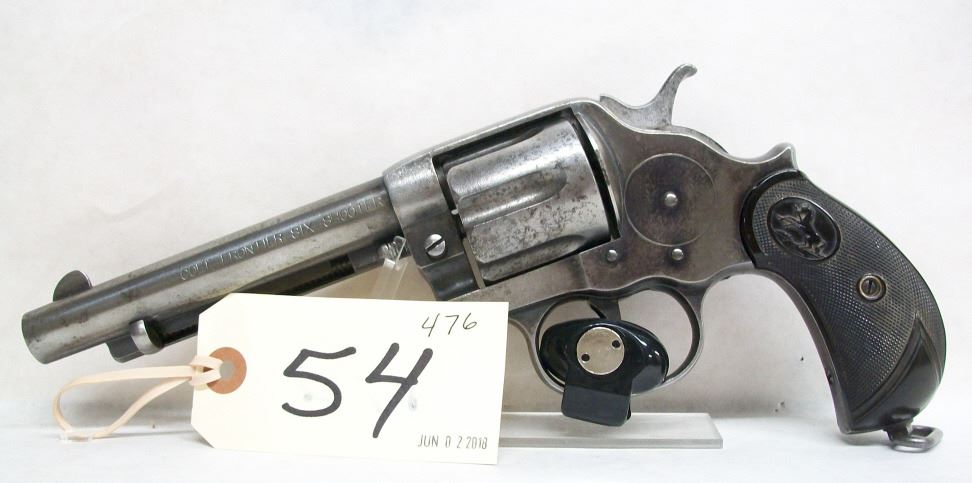 RESTRICTED, REVOLVER, 44-40 WIN, 140MM BARREL, SN 37237. GRIPS VERY GOOD, BLUING IS GREY, BORE HAS A DEEP PIT MARK.