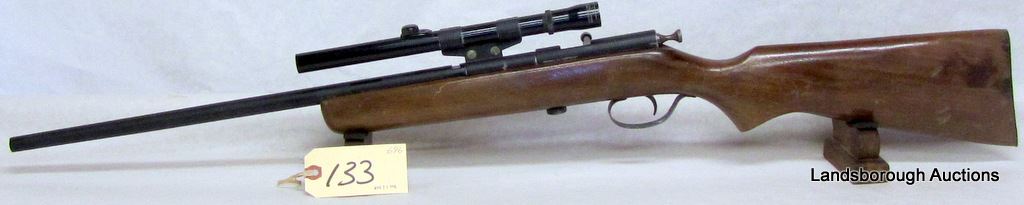 NON-RESTRICTED, SINGLE SHOT, 22 CAL, 21" BARREL, SN NONE. WOOD HAS A NUMBER OF DEEP DENTS, BLUING IS PAINTED BLACK, BORE GOOD. COMES WITH CROSSMAN 4 X 15 SCOPE.