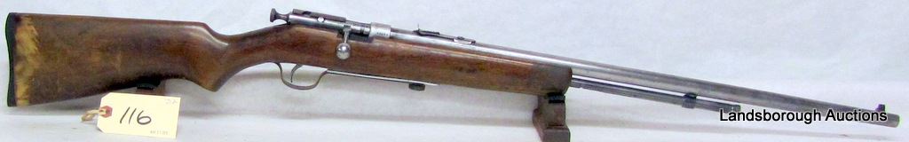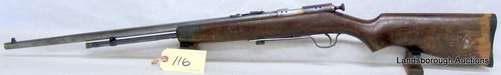 NON-RESTRICTED, BOLT ACTION, 22 CAL, 24" BARREL, SN 47293. WOOD HAS REPAIRED FOREARM, BLUING GONE, BORE VERY GOOD.