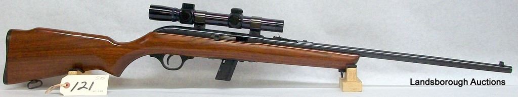 NON-RESTRICTED, SEMI AUTO, 22LR, 20" BARREL, SN 102. WOOD HAS A COUPLE DENTS, BLUING HAS SOME SCRATCHES, BORE VERY GOOD. COMES WITH RUKO ELECTRO-POINT SCOPE.