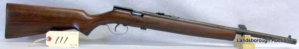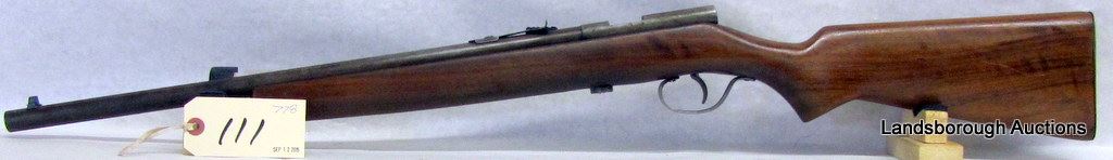 NON-RESTRICTED, SINGLE SHOT, 22 CAL, 20" BARREL, SN NONE. WOOD HAS A FEW SCRATCHES, BLUING IS BROWN, BORE VERY GOOD. MISSING BOLT.