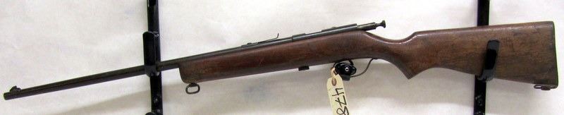 NON-RESTRICTED, BOLT-ACTION SINGLE-SHOT, .22LR, 22" BARREL, NO SN. STOCK IS IN POOR CONDITION, MISSING FINISH AND BADLY SCRATCHED. BLUEING IS PITTED. BORE IS DARK AND PITTED.