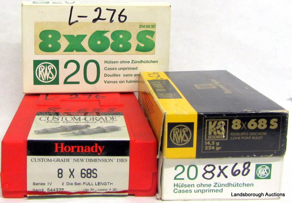 NON-RESTRICTED, BOLT ACTION, 8X68 MAUSER, 28 " BARREL WITH MUZZLEBREAK, SN 5889, RAMLINE STOCK, TASCO SCOPE 4X40. COMES WITH DIES, 36 ROUNDS LOADED AND 23 BRASS. FIREARM HAS DROP FLOORPLATE AND SIDE SAFETY.
