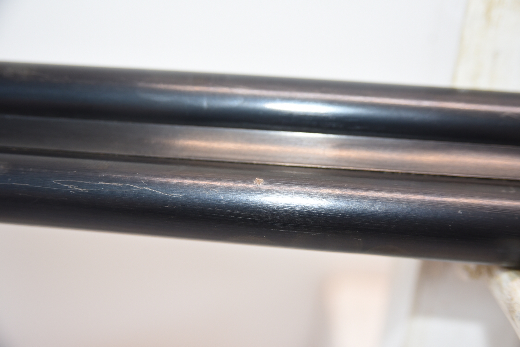 Metal finish shows light scratches, some rust near the breech, there are scuffs, some light scratches; condition is good.