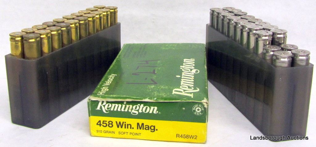 NON-RESTRICTED, BOLT ACTION, 458 WIN MAG, 25" BARREL, SN 4162, SYN STOCK. WITH 56 ROUNDS OF RELOADS.