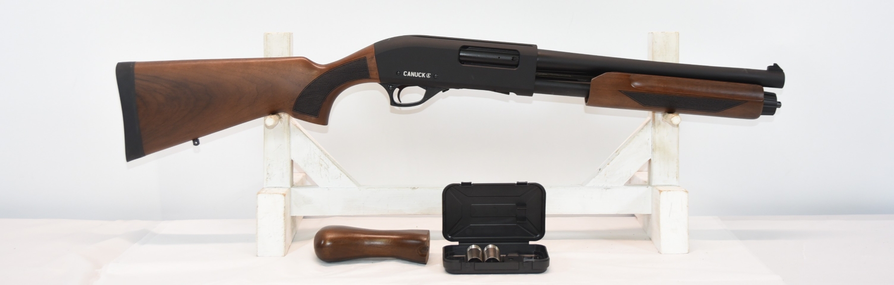 Canuck Regulator/Defender Pump Action 12 Gauge Shotgun With Chokes and Pistol Grip