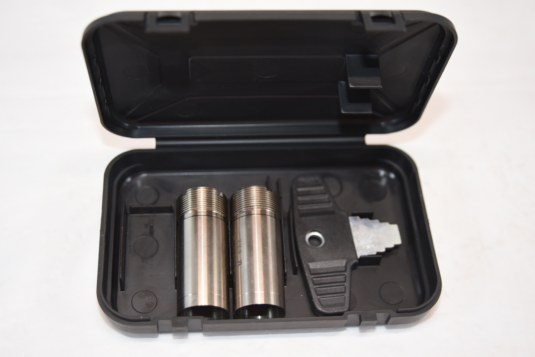 Firearm comes with Full and Modified choke and choke key. Also included is the bird head grip.