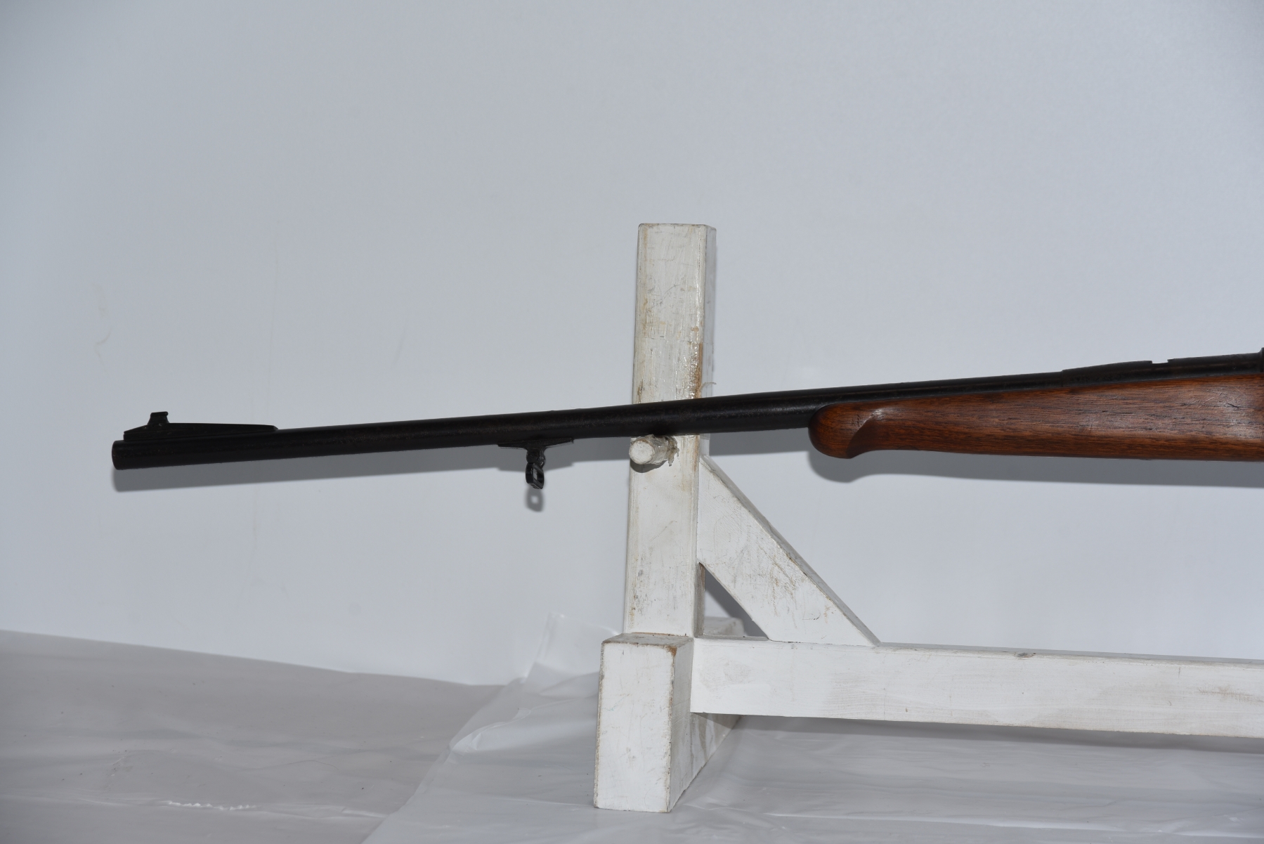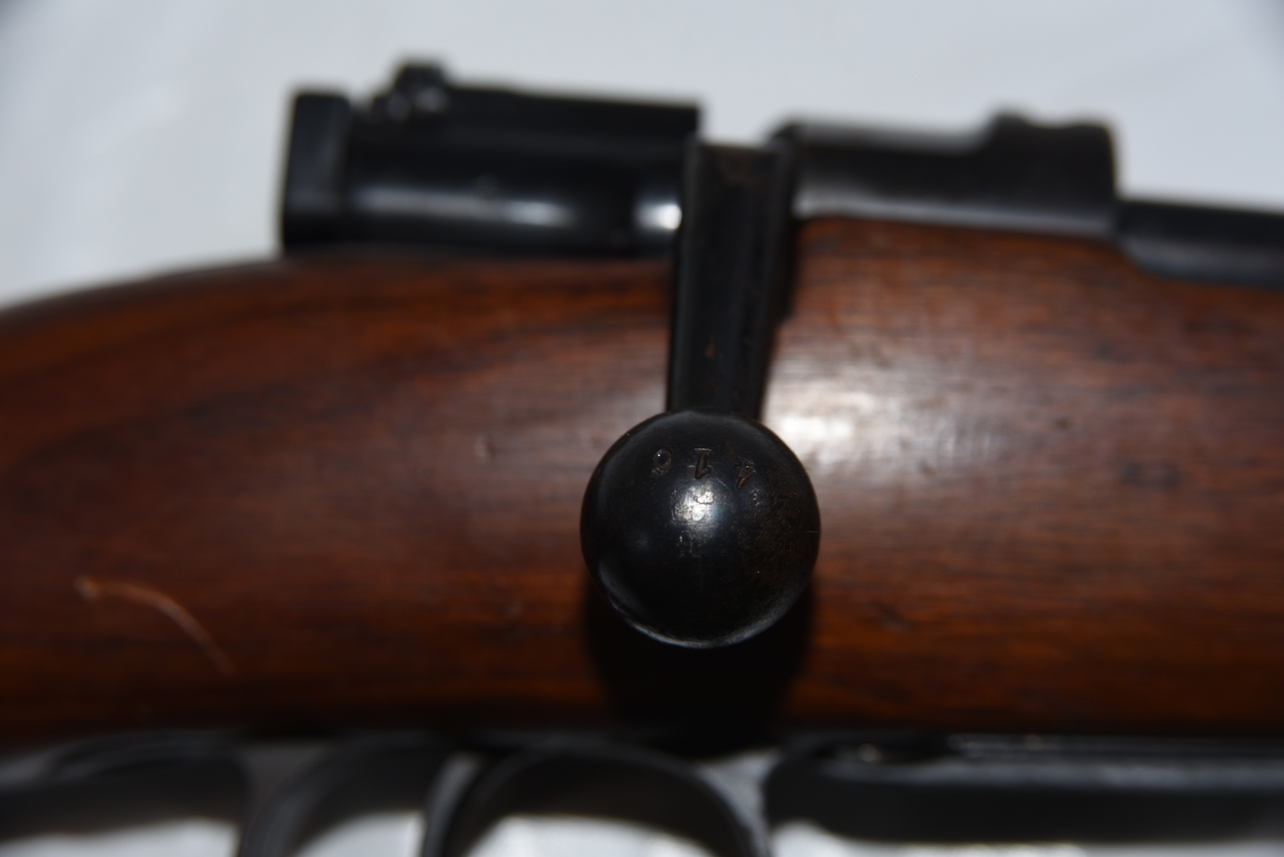 Wood stock shows some scratches, scuffs, light dents; condition is good.