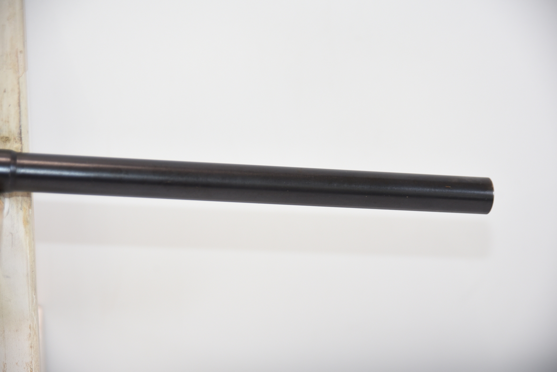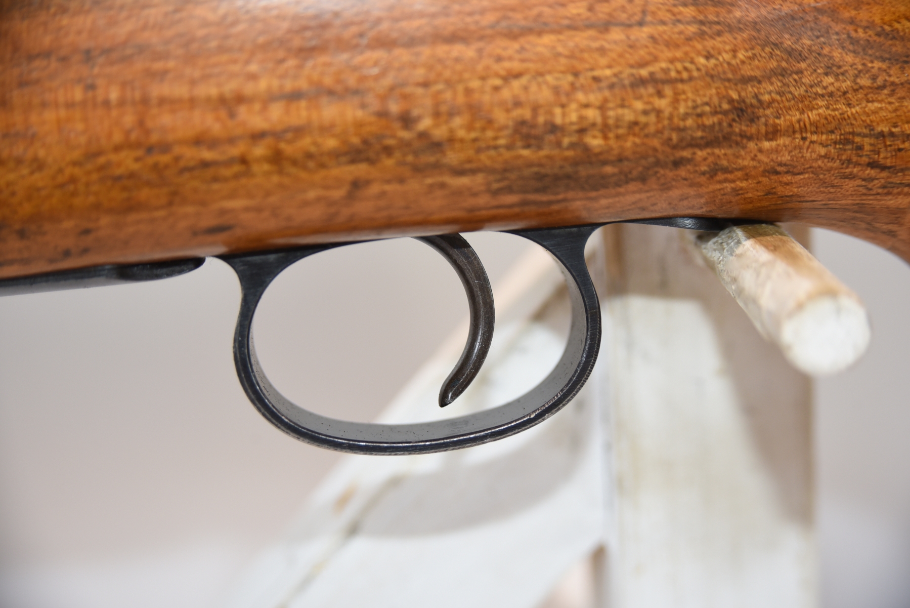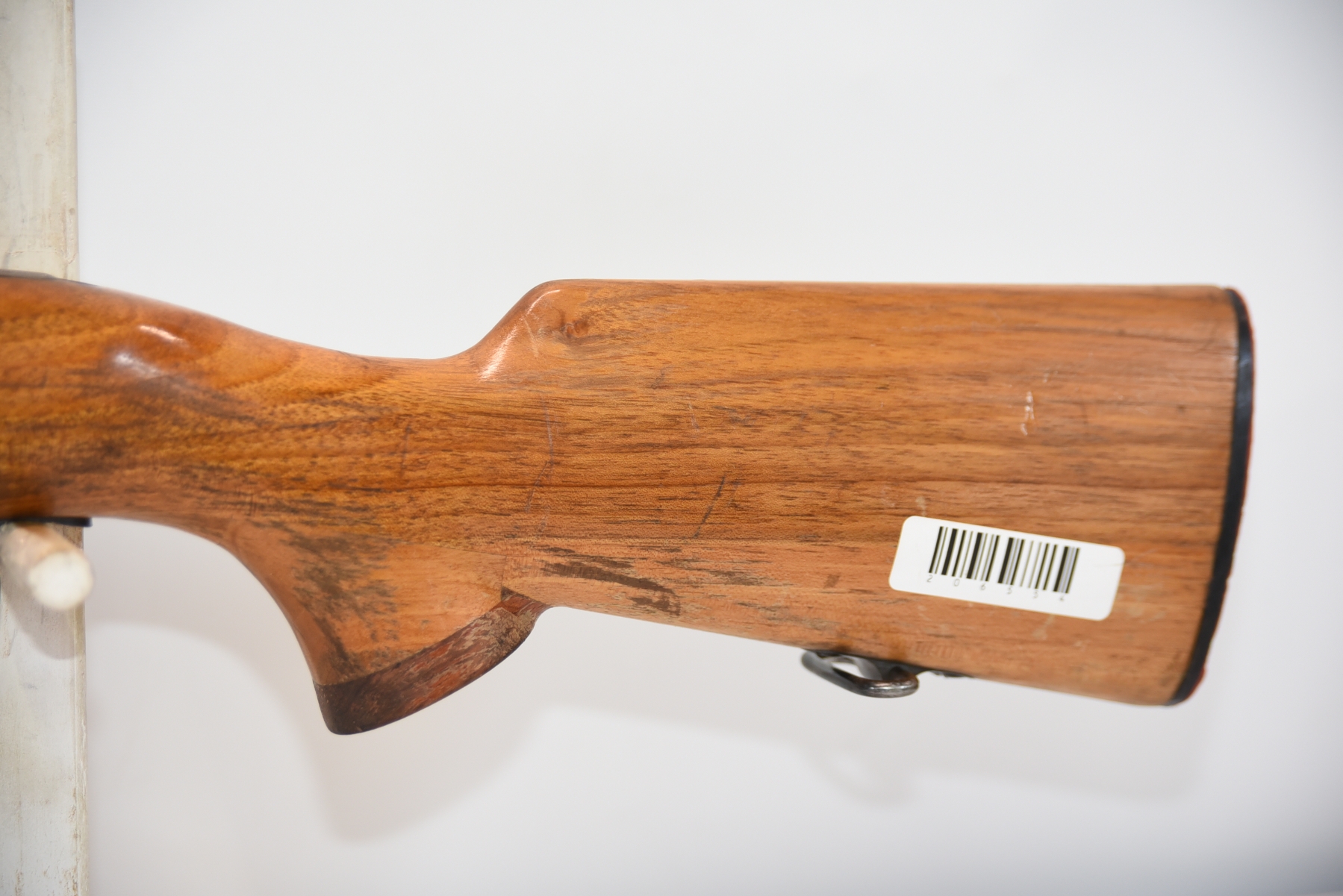 Wood stock show a modification to the grip, there are scratches, scuffs, dent on most of the stock. Butt plate is missing. Condition is fair.