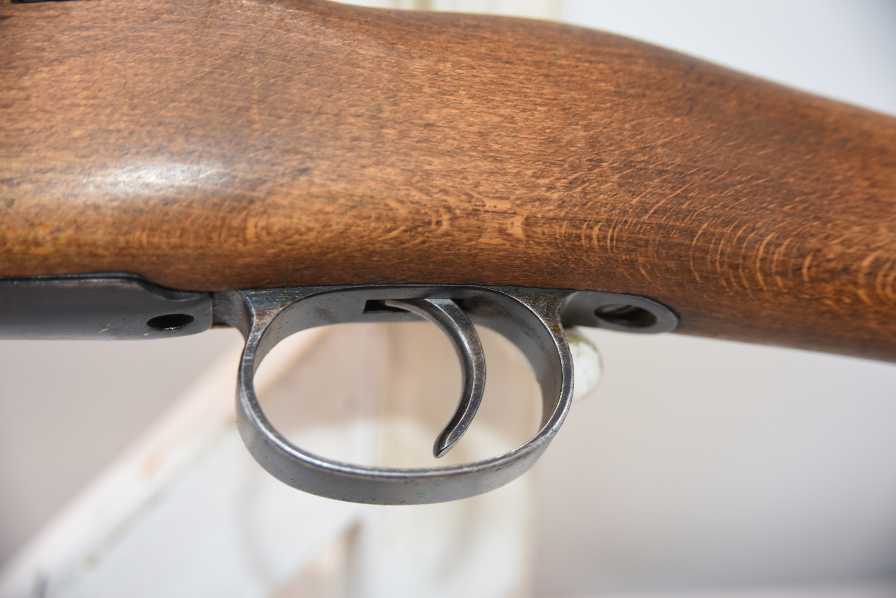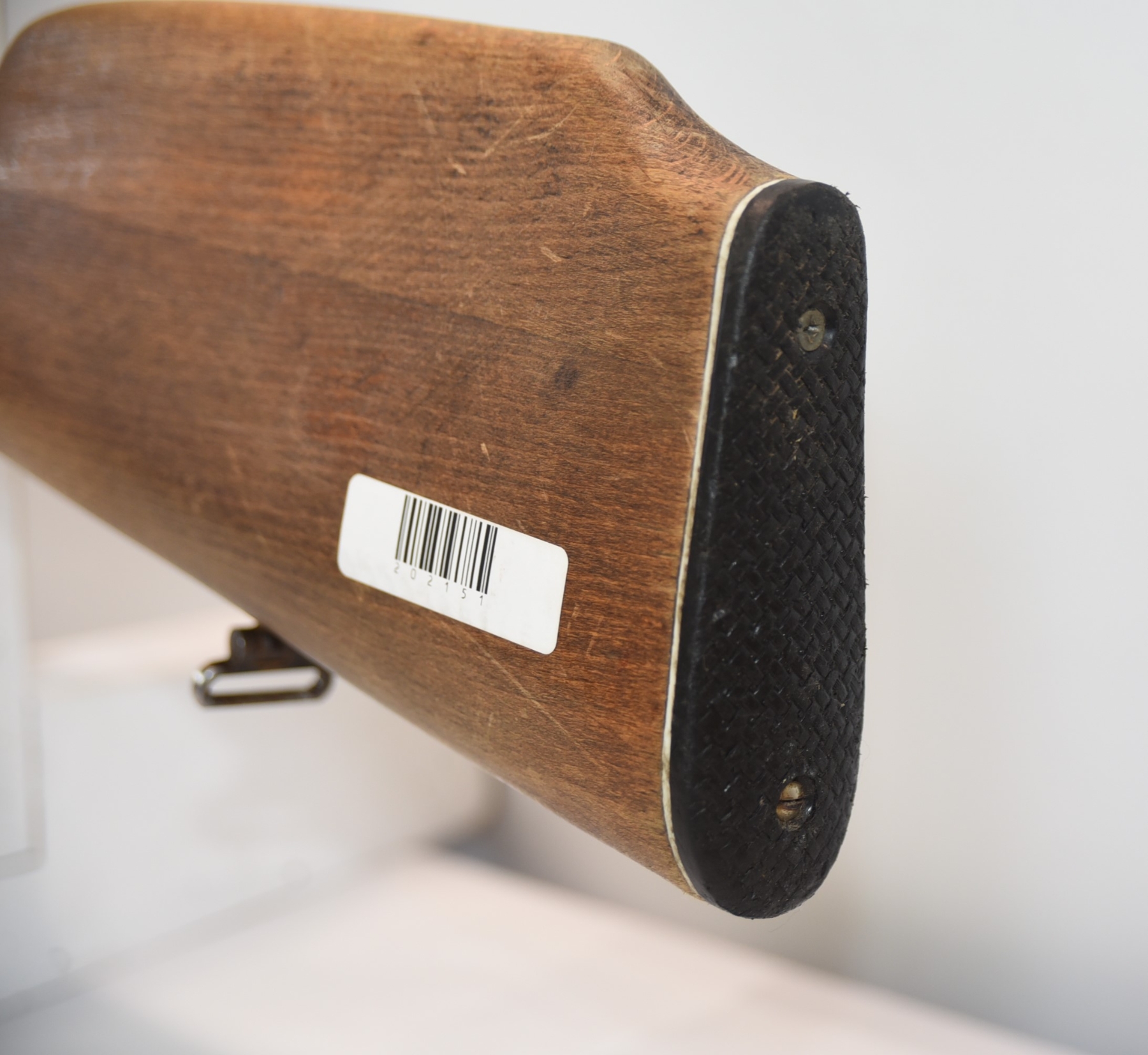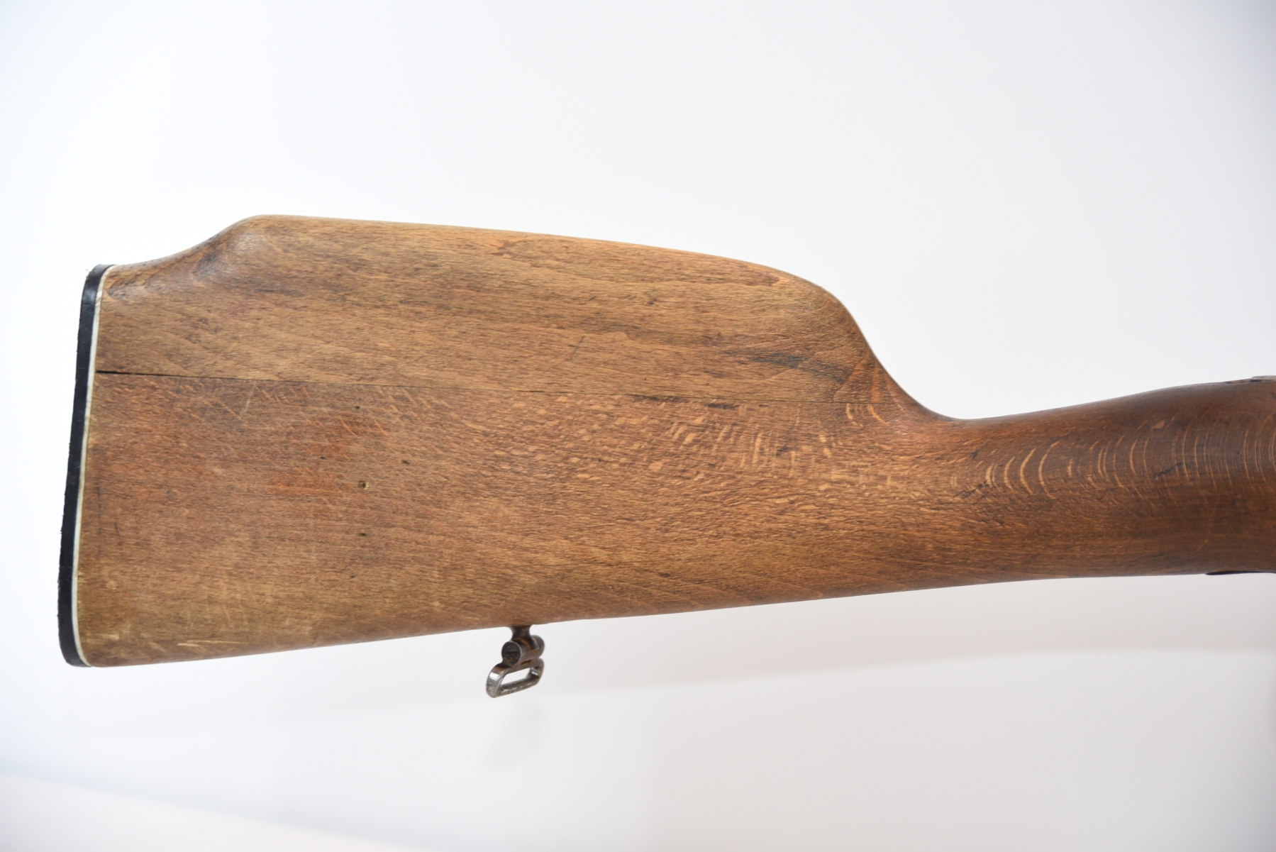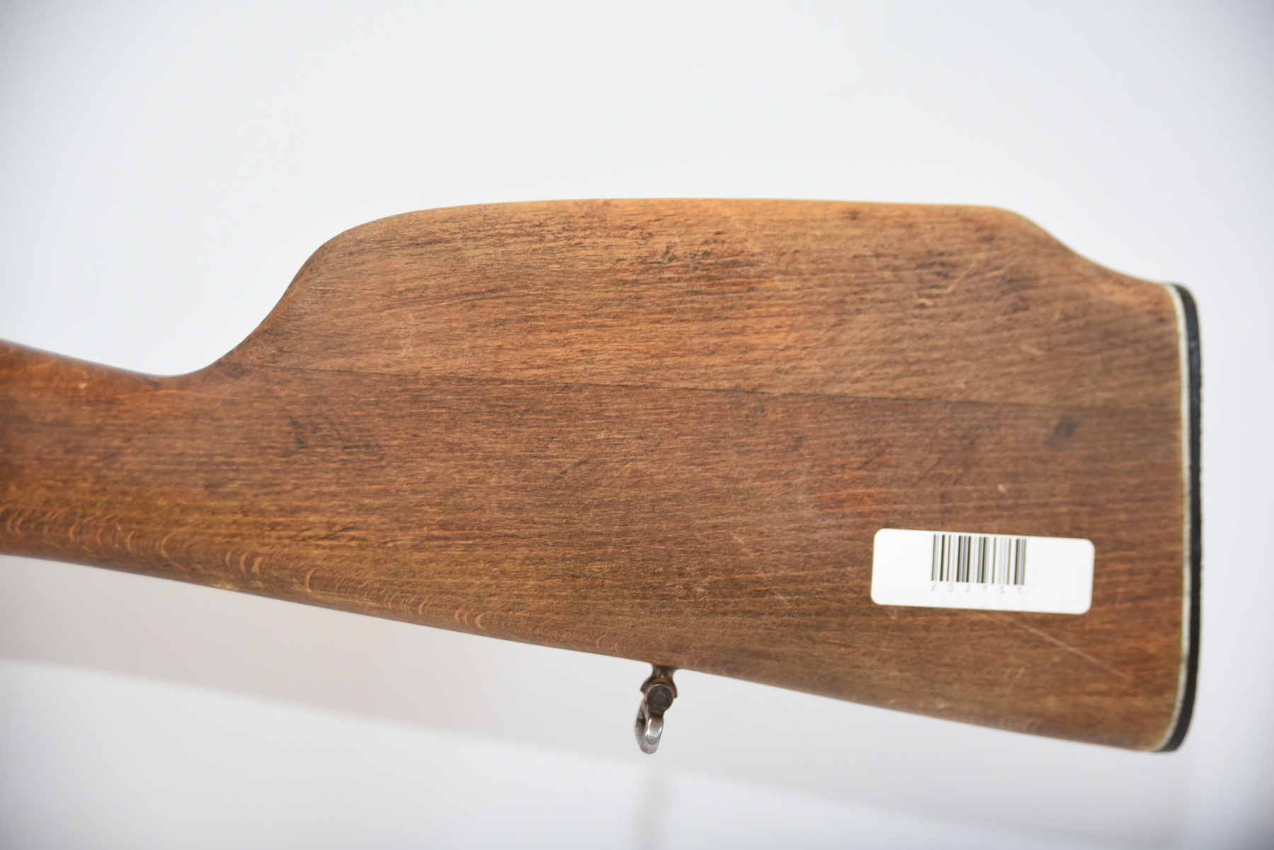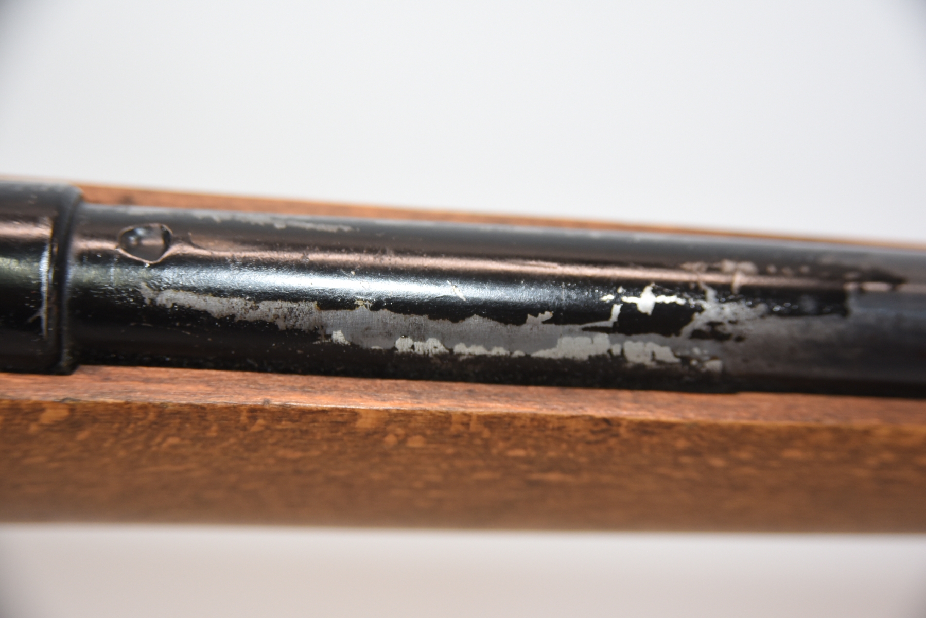 Wood stock shows some scratches, scuffs, cheek piece has been added to the rear of stock; condition is good.
