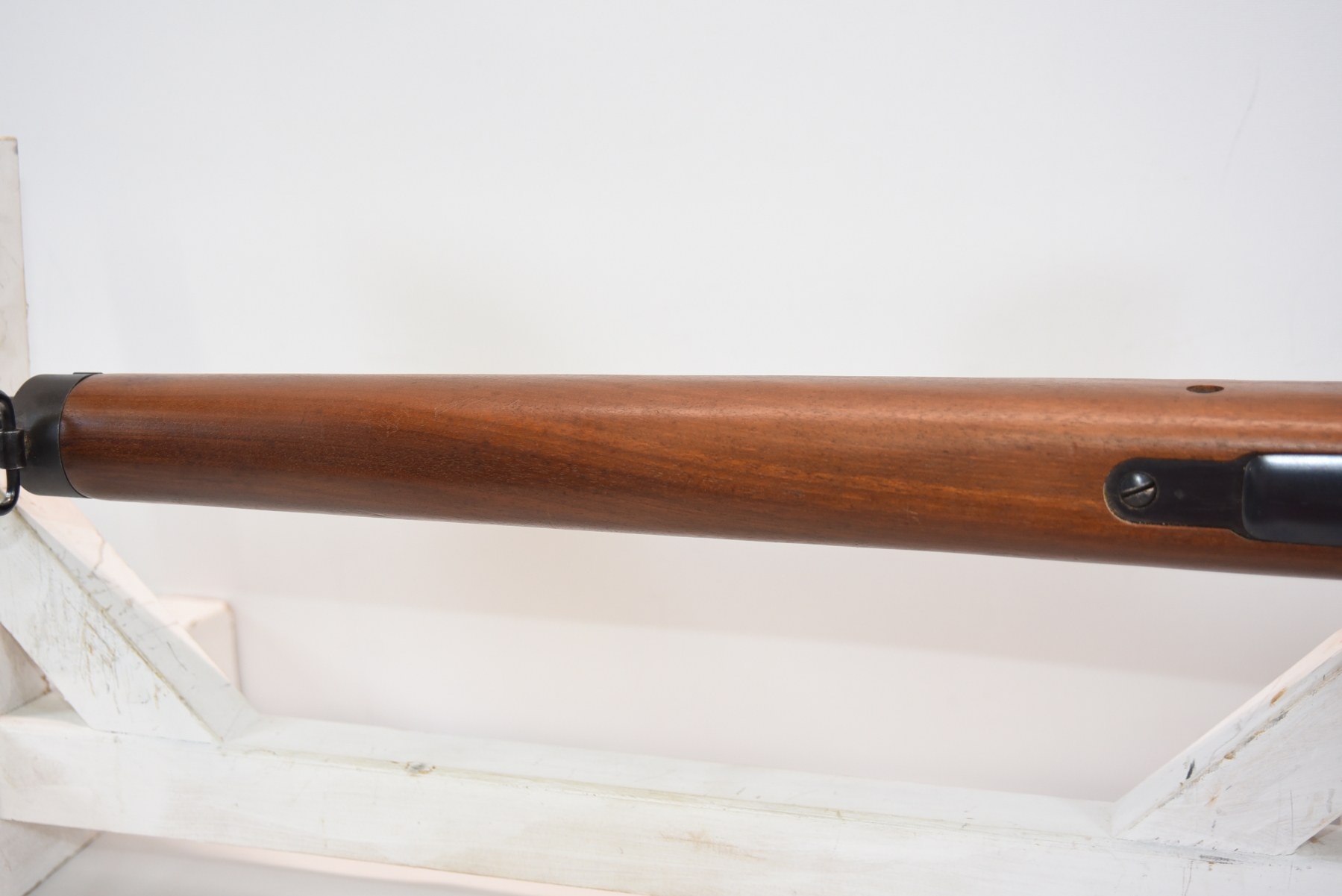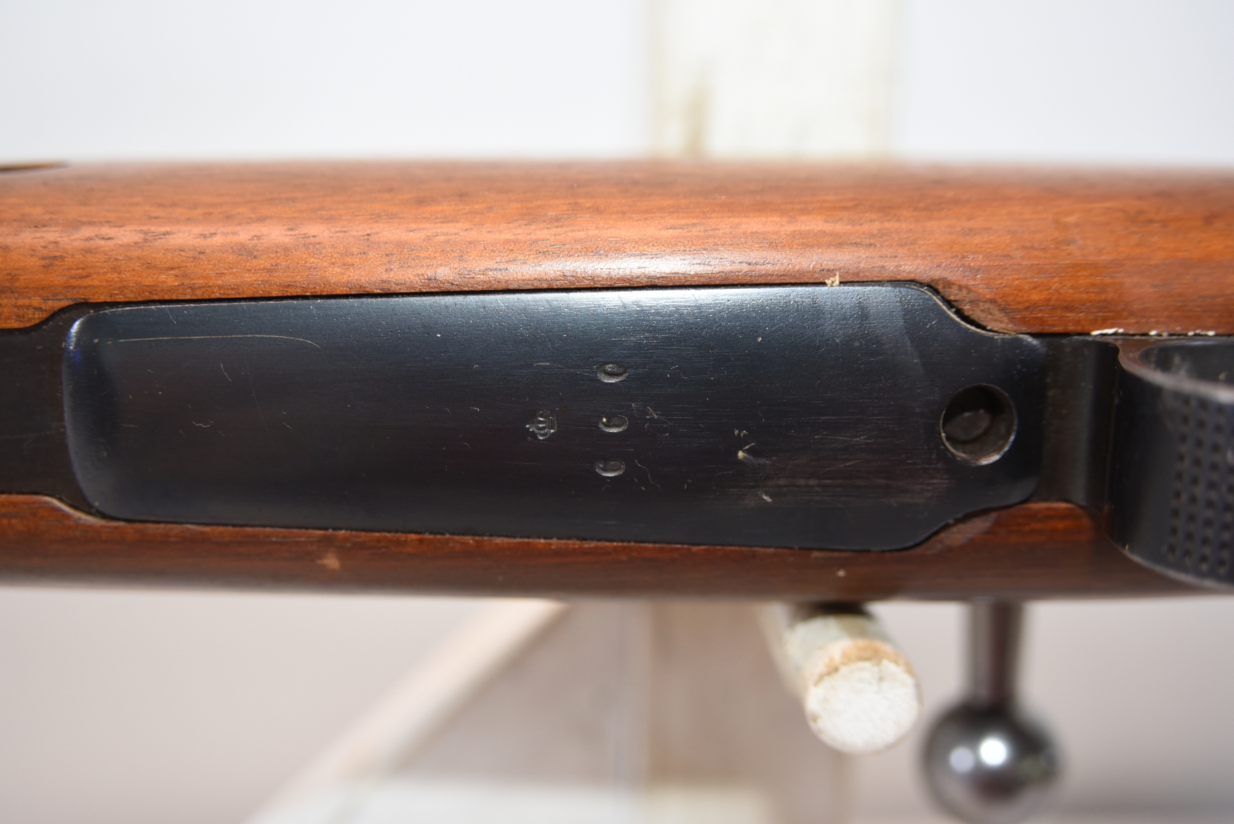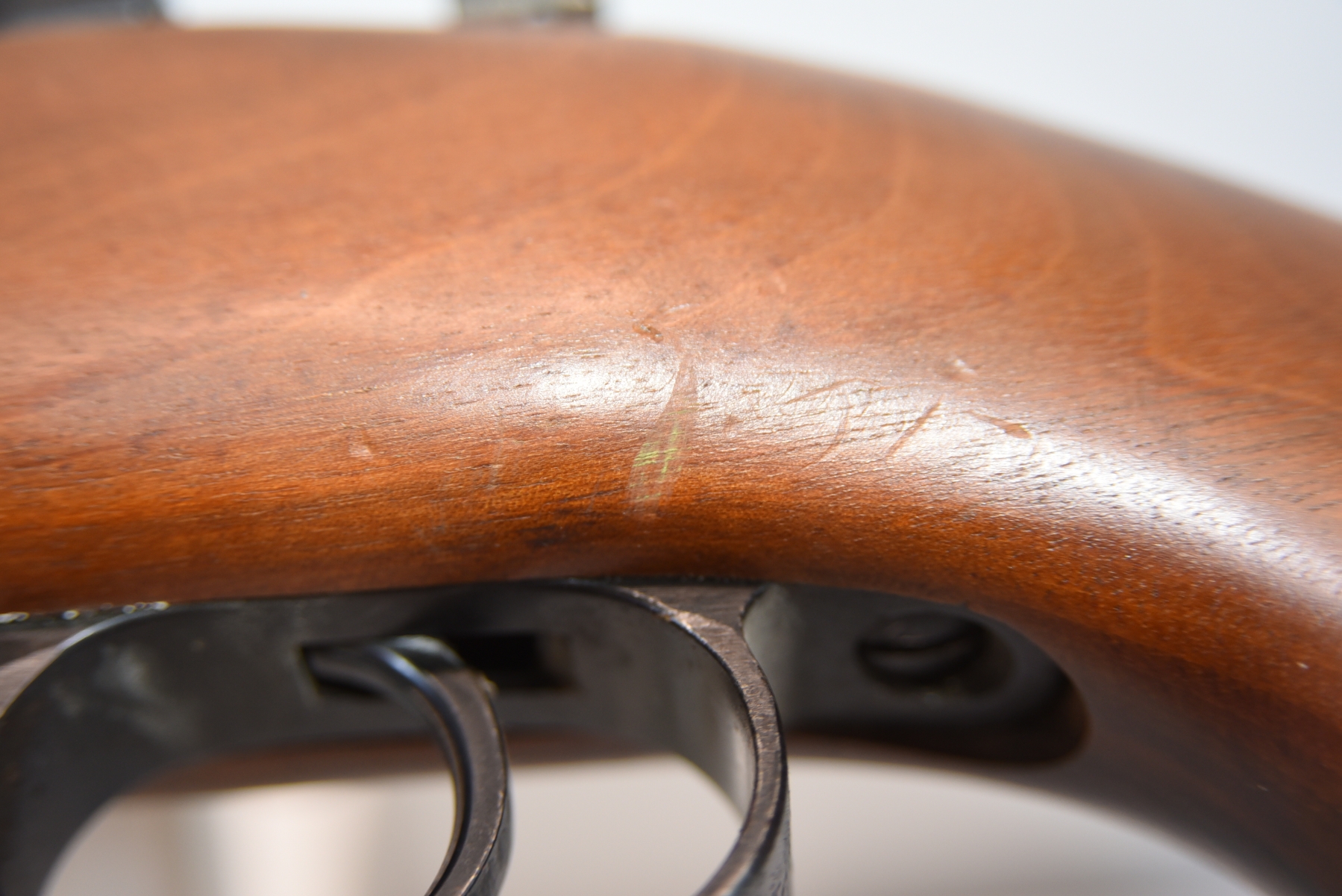 Wood stock shows few light dents, scratches, and scuffs; condition is very good.