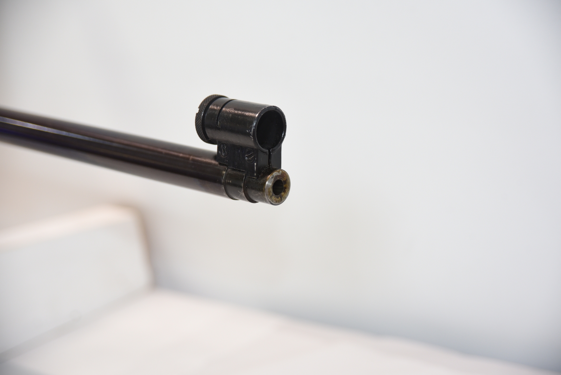 Metal bluing shows some light scratches, finish wear at muzzle; condition is good.