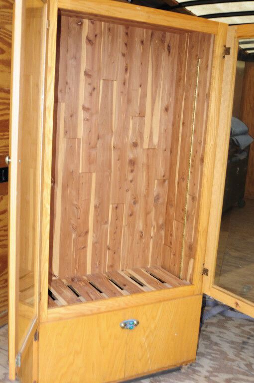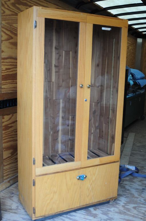 Cigar Humidor with 4 shelves , top cabinet locks with key, cabinet and shelves are lined with Spanish Cedar NO SHIPPING ON THIS ITEM MUST PICK UP