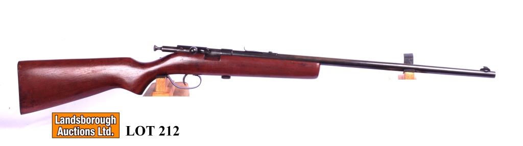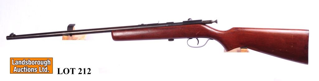 Non-restricted, bolt action single shot, 22 s-l-lr, 22" barrel, SN none, wood has some light scratches, bluing is turning brown, bore is excellent
