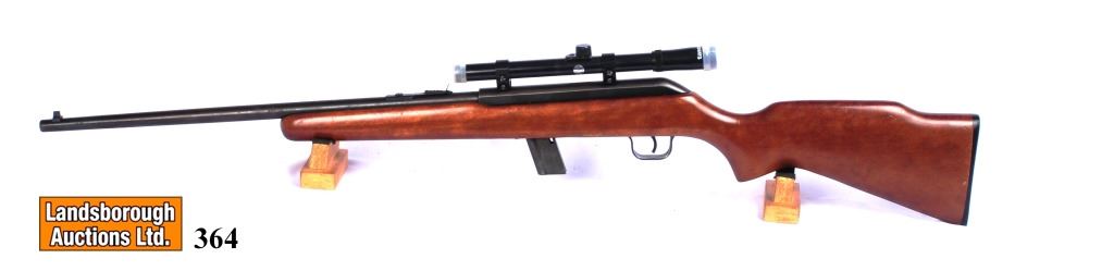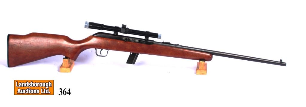 Non-restricted, semi auto, 22LR, 20" barrel, SN CA131316. Wood chipped in toe with numerous scratches, bluing turning brown, bore excellent.