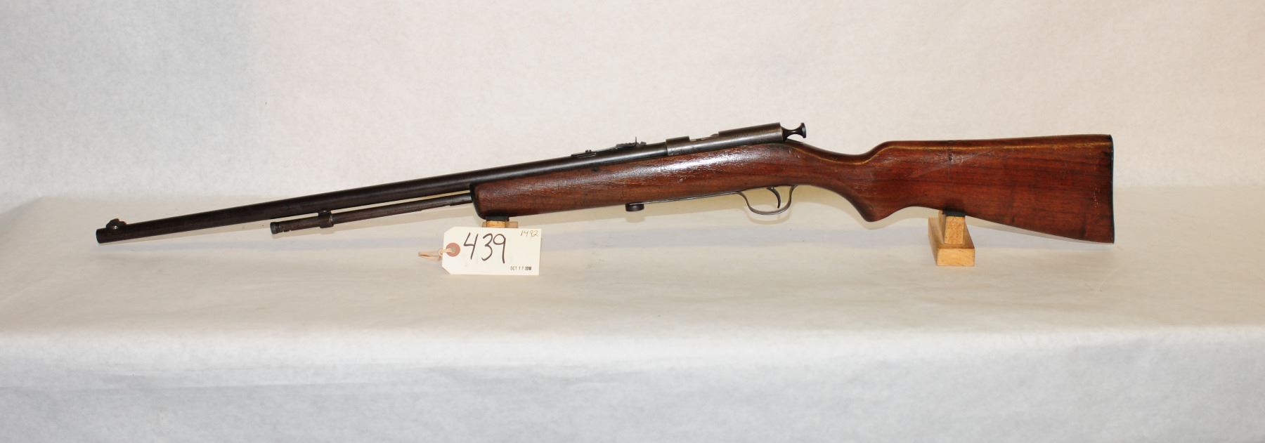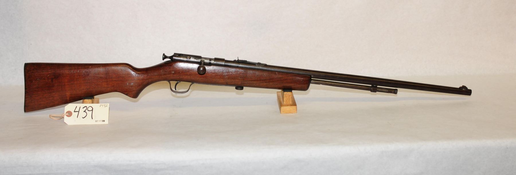 Non-restricted, bolt action, 22 lr, 24" barrel, SN none , wood has a few dints and handling marks, bluing is turning brown, bore is very good,