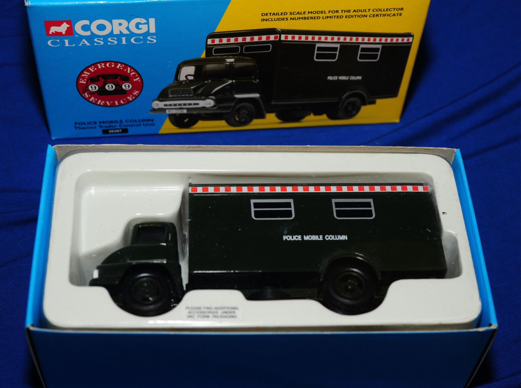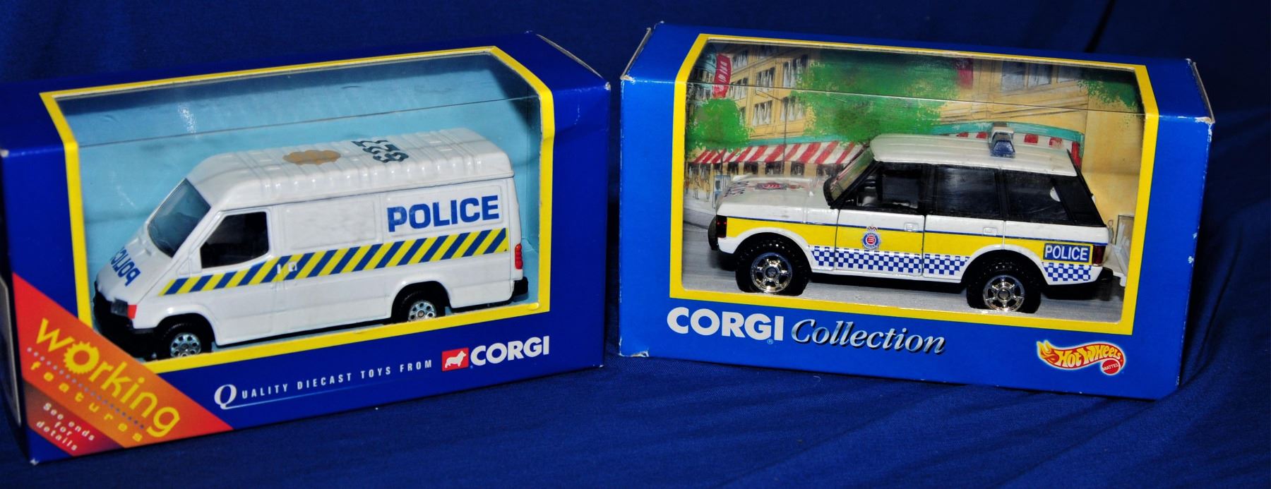 1) 1:36 scale ford Transit van Police with opening rear door 2) 1:36 scale Range Rover Essex Police UK 3) 1:50 scale Thames Trader Control Unit Police Mobile Column 4) Jet Ranger Helicopter sheriff's Dept.