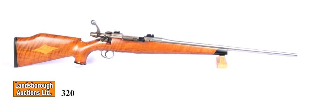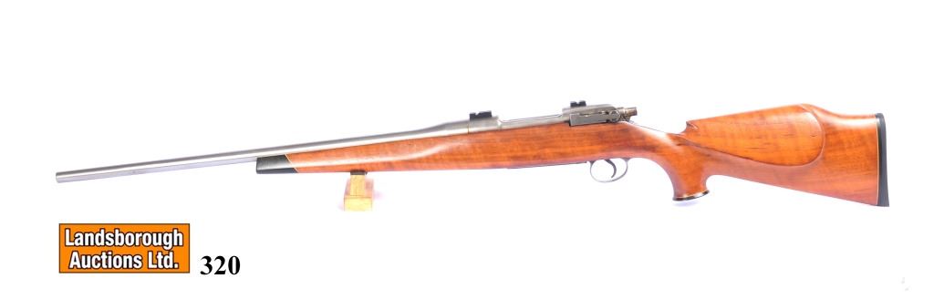 Non-restricted, bolt action, 303 norma mag., 23" barrel, SN 23543, wood is good finish is checking, stainless barrel and action are good, bore is very good, gun has a Judd stock, a P14 action and scope rails