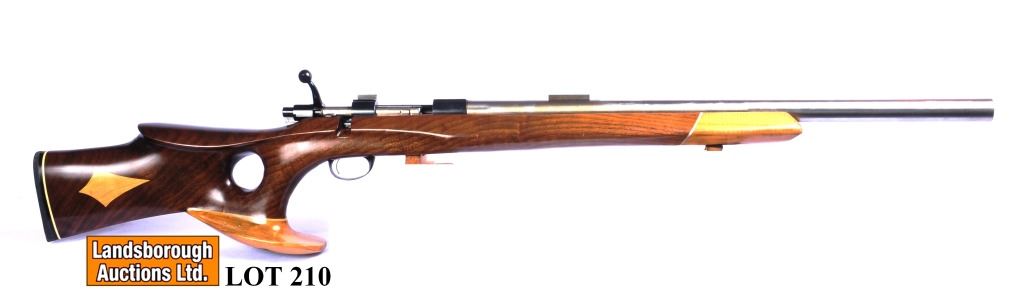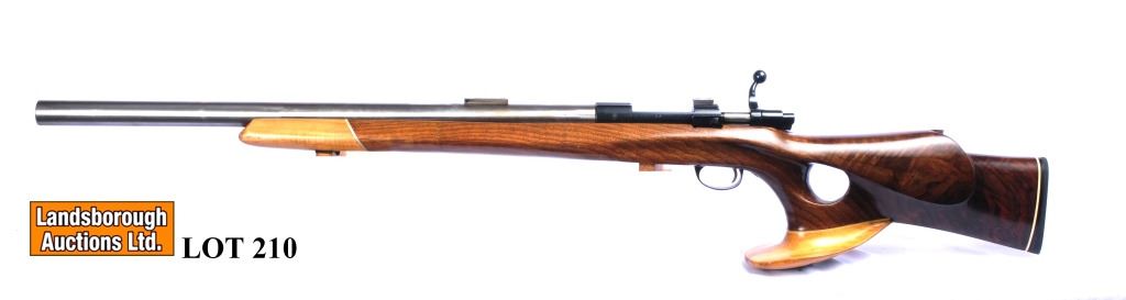 Non-restricted, single shot, 22-250, 26" heavy barrel, SN none, wood is a custom thumbhole stock with an oversized pistol grip cap, stainless barrel and blued action are in good condition, bore is excellent, as mentioned the gun is custom made with a custom stock and barrel using a Saiko L579 action, No, 13512 is stamped on the action
