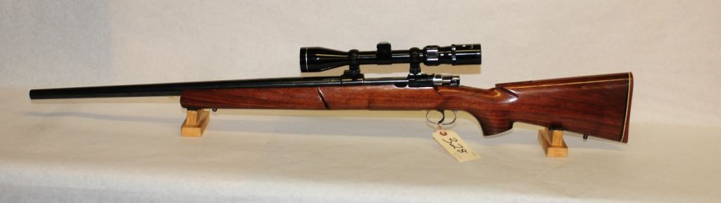 Non-restricted, bolt action single shot, 220 swift, 24" heavy barrel, SN 24172, wood is a custom stock in good condition with some minor marks, bluing is fair, bore is excellent, has a Parker Hale 3-9x40 scope