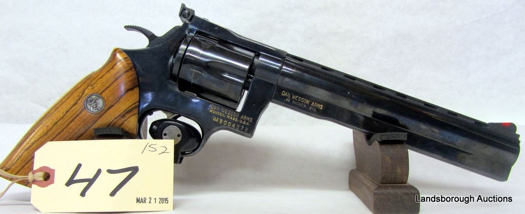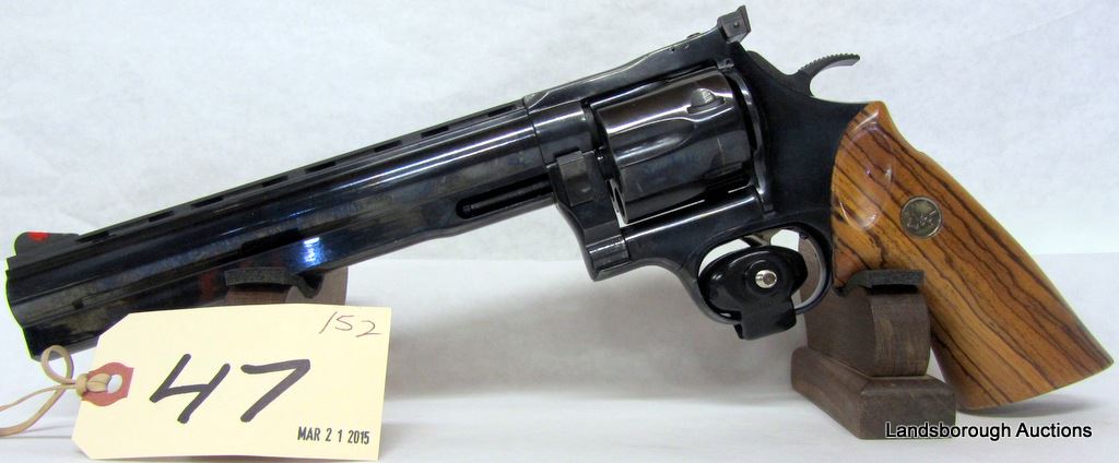RESTRICTED, REVOLVER, 44 MAGNUM, 203MM BARREL, SN 44B004378. WOOD GRIPS HAVE ONE AMLL CHIP, BLUING HAS A FEW SCRATCHES, BORE VERY GOOD.