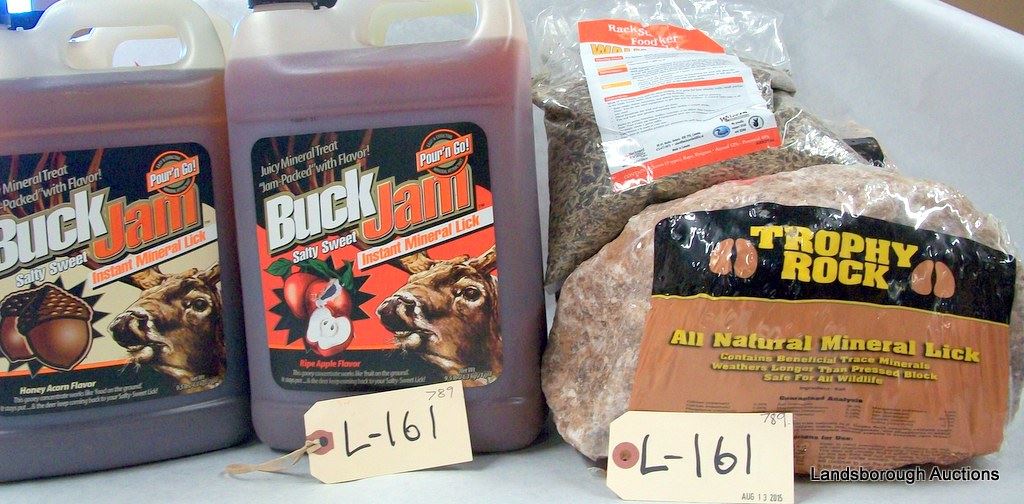 2 BLOCKS TROPHY ROCK AND 4 JUGS OF BUCK JAM , THREE ARE ACORN AND ONE APPLE. ONE BAG RACKSTACKER WALK AND TOSS.HEAVY MUST PICK UP.