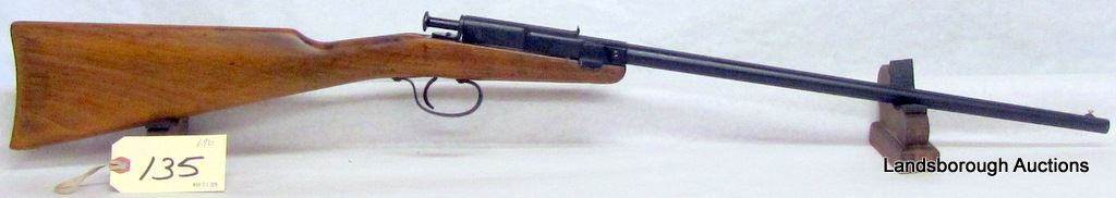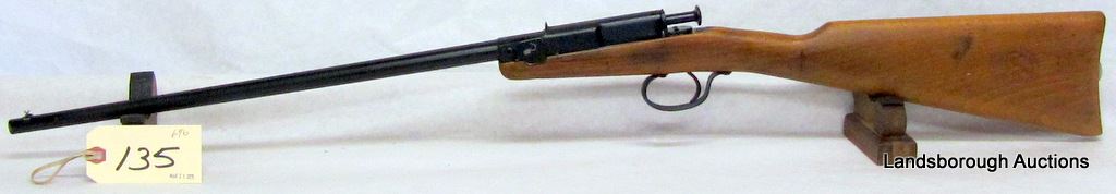 NON-RESTRICTED, SINGLE SHOT, 22 LR, 19" BARREL, SN NONE. WOOD HAS A COUPLE SMALL MARKS, MATTE METAL FINISH WITH PIT MARKS EVIDENT, BORE GOOD.