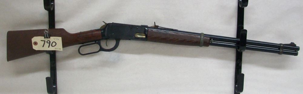 lever action .177 BB with imitation wooden stocks. This model was also referred to as the Daisy Spittin Image, looks just like a Winchester model 1894. Loads through a side gate.