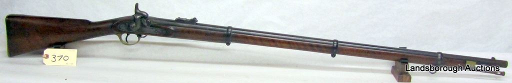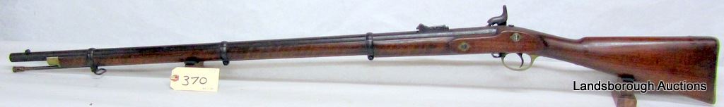 ANTIQUE, SINGLE SHOT, 583 CAL PERCUSSION, 38" BARREL, SN NONE. WOOD HAS A FEW MARKS AND DENTS, BLUING IS BROWN WITH PITTING, BORE PITTED.