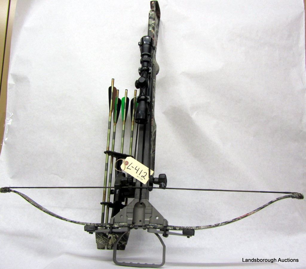 COMES WITH VARIZONE SCOPE , COCKING AID , STRING WAX, STRINGER, 10 EASTON 2216 XX75 BOLTS 6 WITH BROAD HEADS.