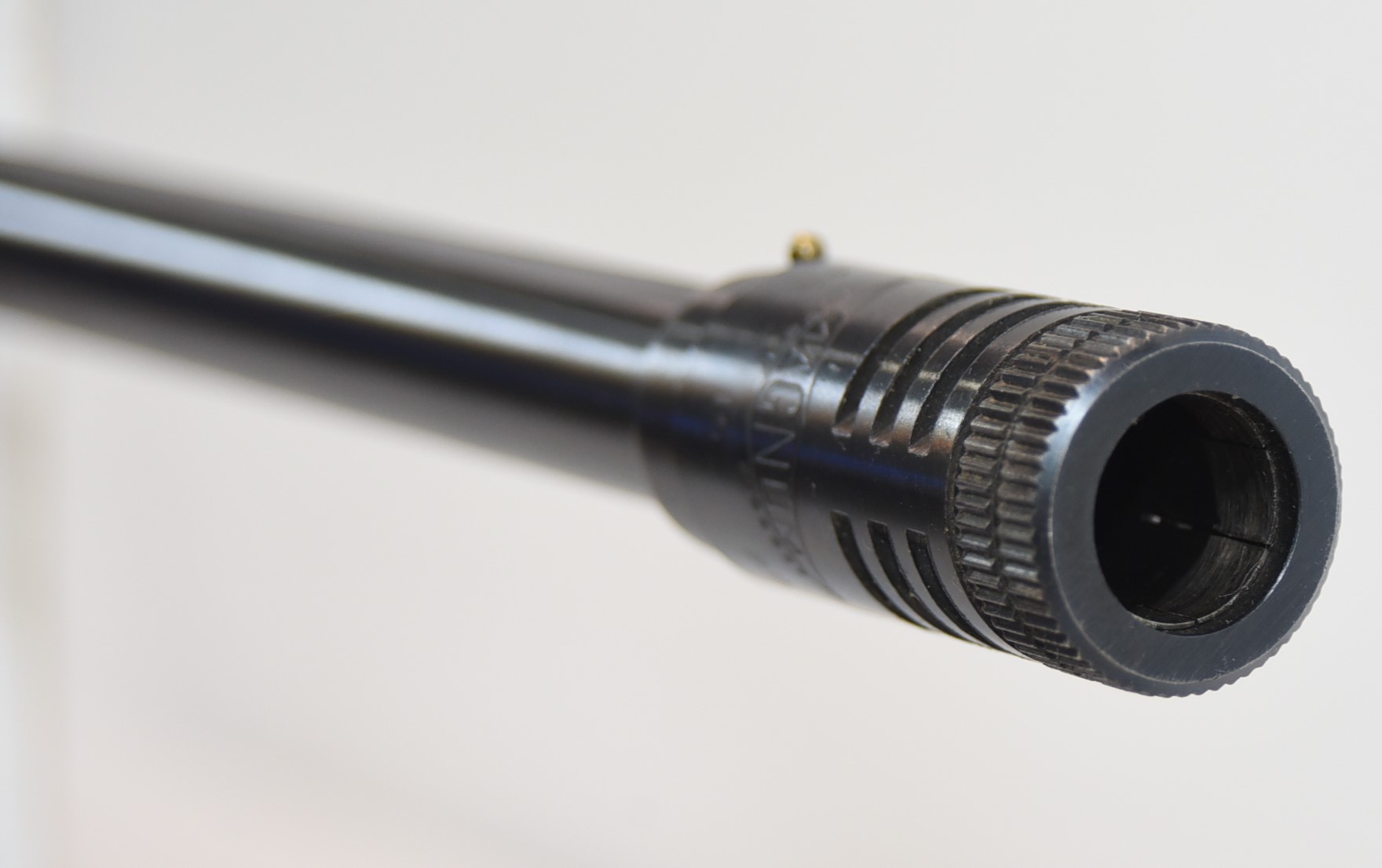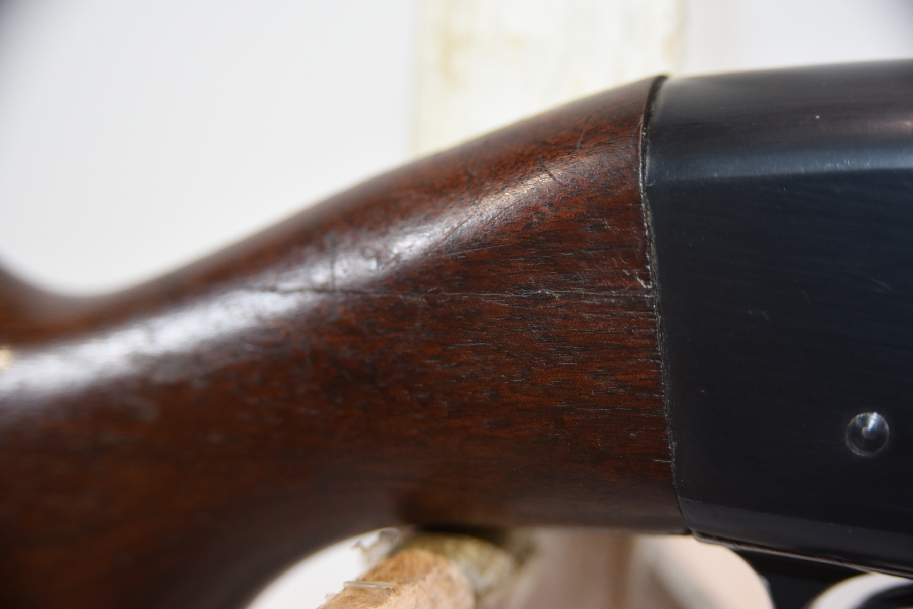 Wood stock shows a fine crack on either side of the grip area on rear stock, there are small scratches, scuffs; condition is good.
