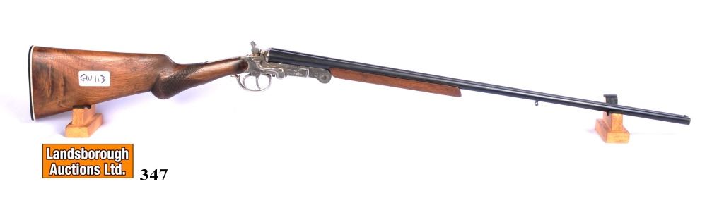 Non-Restricted, multi barrel, 410ga x 3", 27 1/2" barrel, with fixed full chokes, SN 42743. Wood butt oversanded, forearm does not appear original, bluing and nickel plating has light pit marks, bores excellent. Does not fold, sling swivels missing.