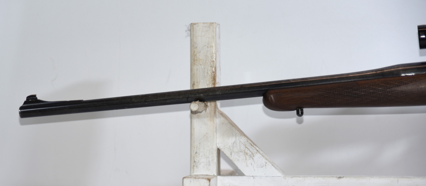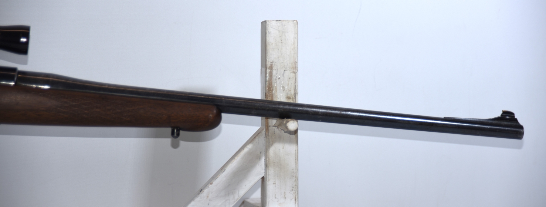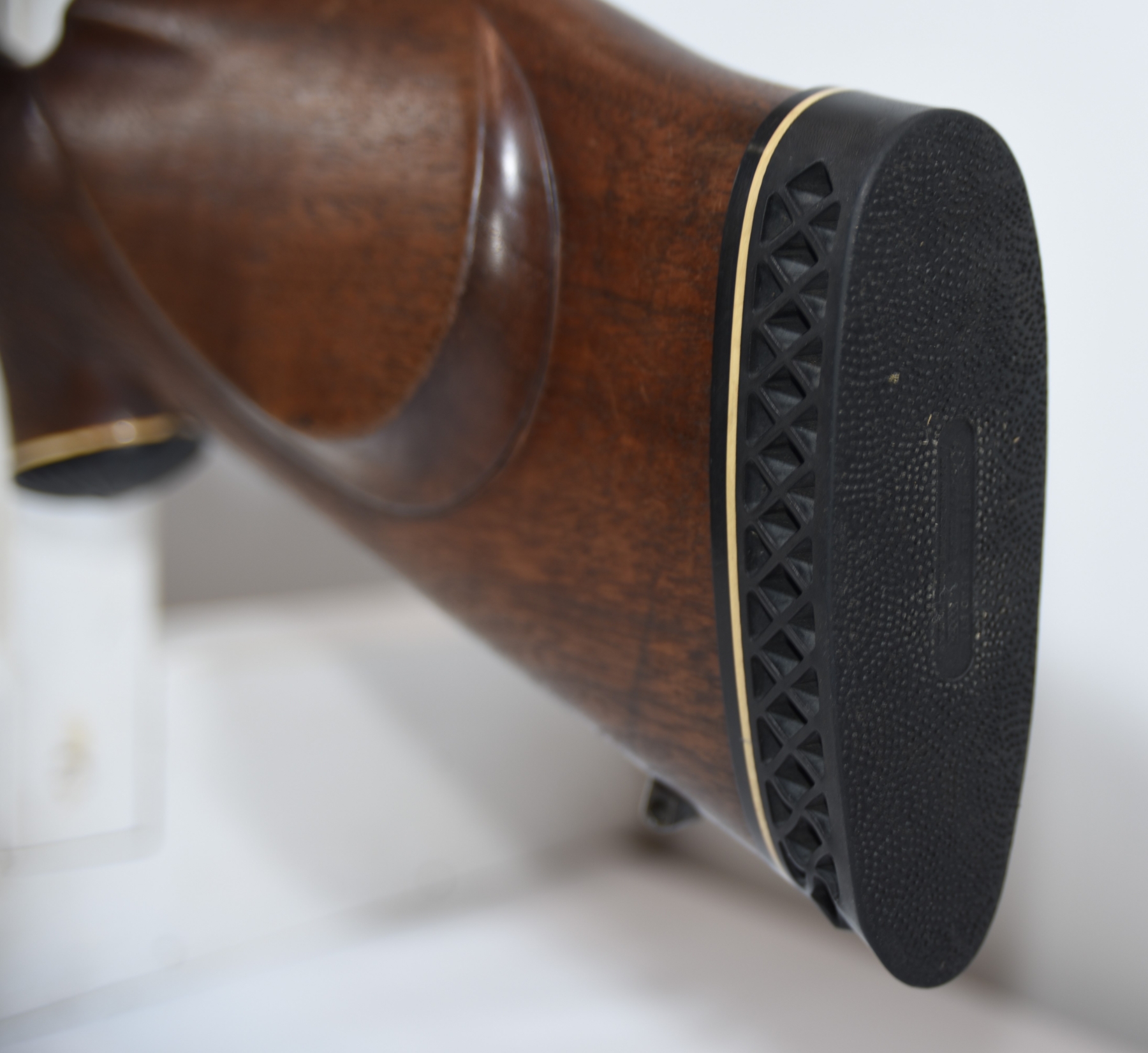 Wood stock shows light scratches and scuffs, few light dents, rubber butt pad has hardened; condition is very good.